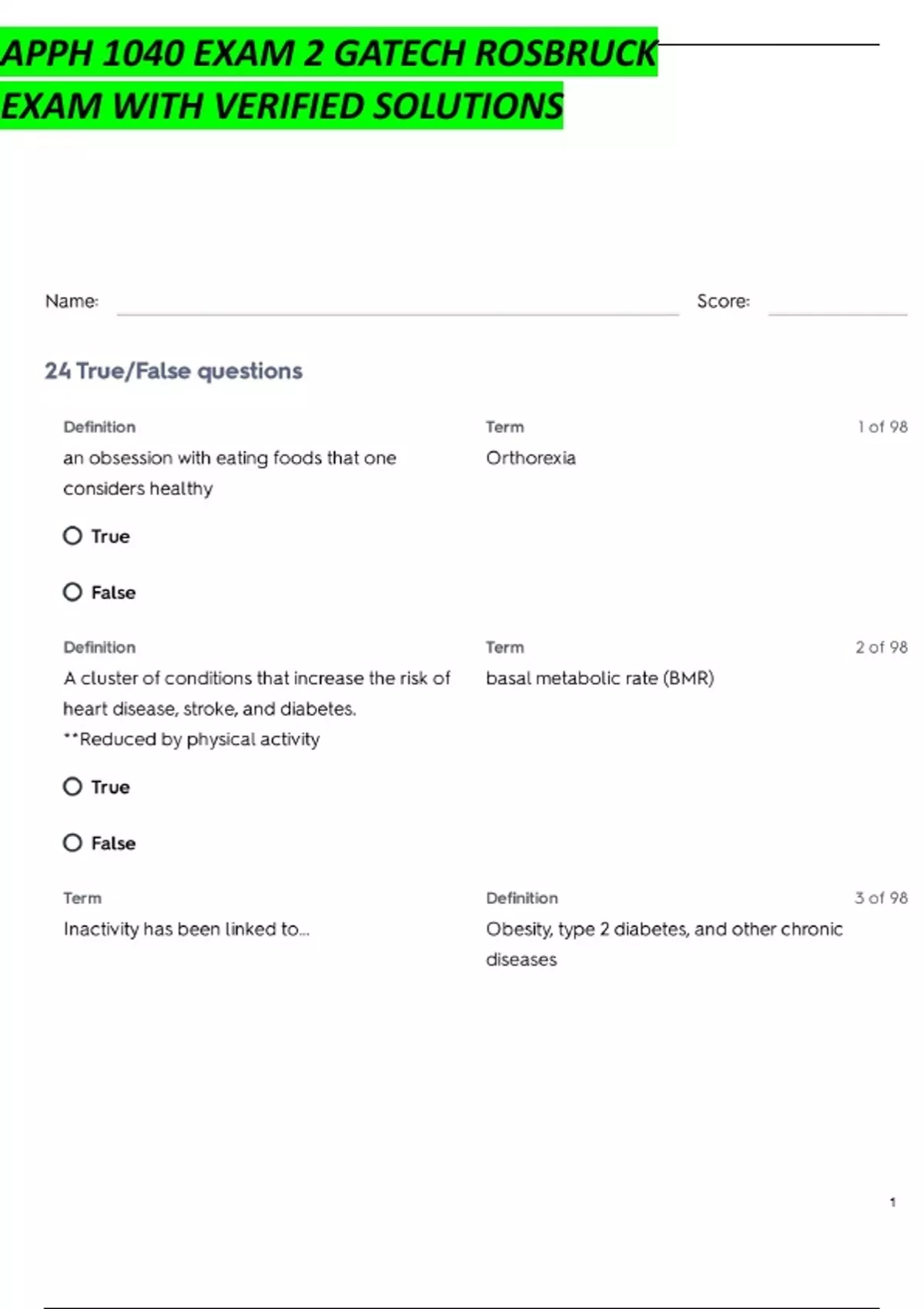 APPH 1040 EXAM 2 GATECH ROSBRUCK EXAM WITH VERIFIED SOLUTIONS.
