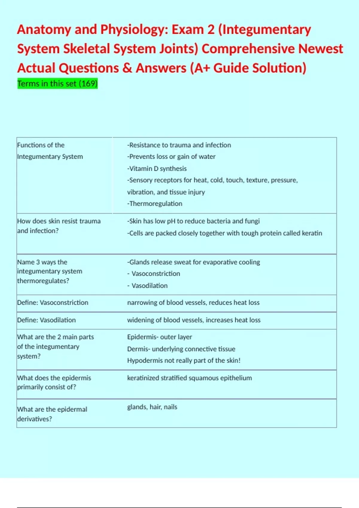 1 Exam (elaborations) Anatomy and physiology Exam 4 / Expert Strategies, Review of Key Quizzes, and Practice Questions for Guaranteed Success / Newest 2025/2026. 2 Exam (elaborations) Anatomy And Physiology ATI TEAS Test study guide / Questions with Definitive Solutions. 3 Exam (elaborations) Anatomy and Physiology: Exam 2 (Integumentary System S