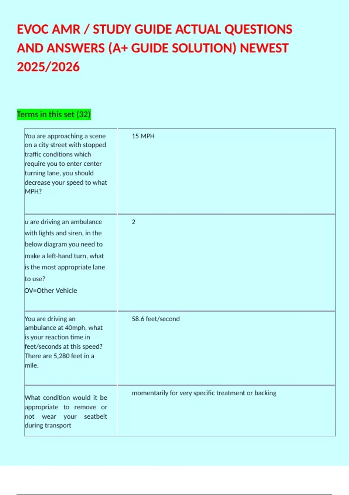Exam (elaborations) Virginia Fire Programs - EVOC Study Guide (Class 1,2,3) Expert Strategies, Review of Key Quizzes, and Practice Questions for Guaranteed Success’ 2 Exam (elaborations) EVOC AMR / STUDY GUIDE ACTUAL QUESTIONS AND ANSWERS (A+ GUIDE SOLUTION) NEWEST 2025/2026