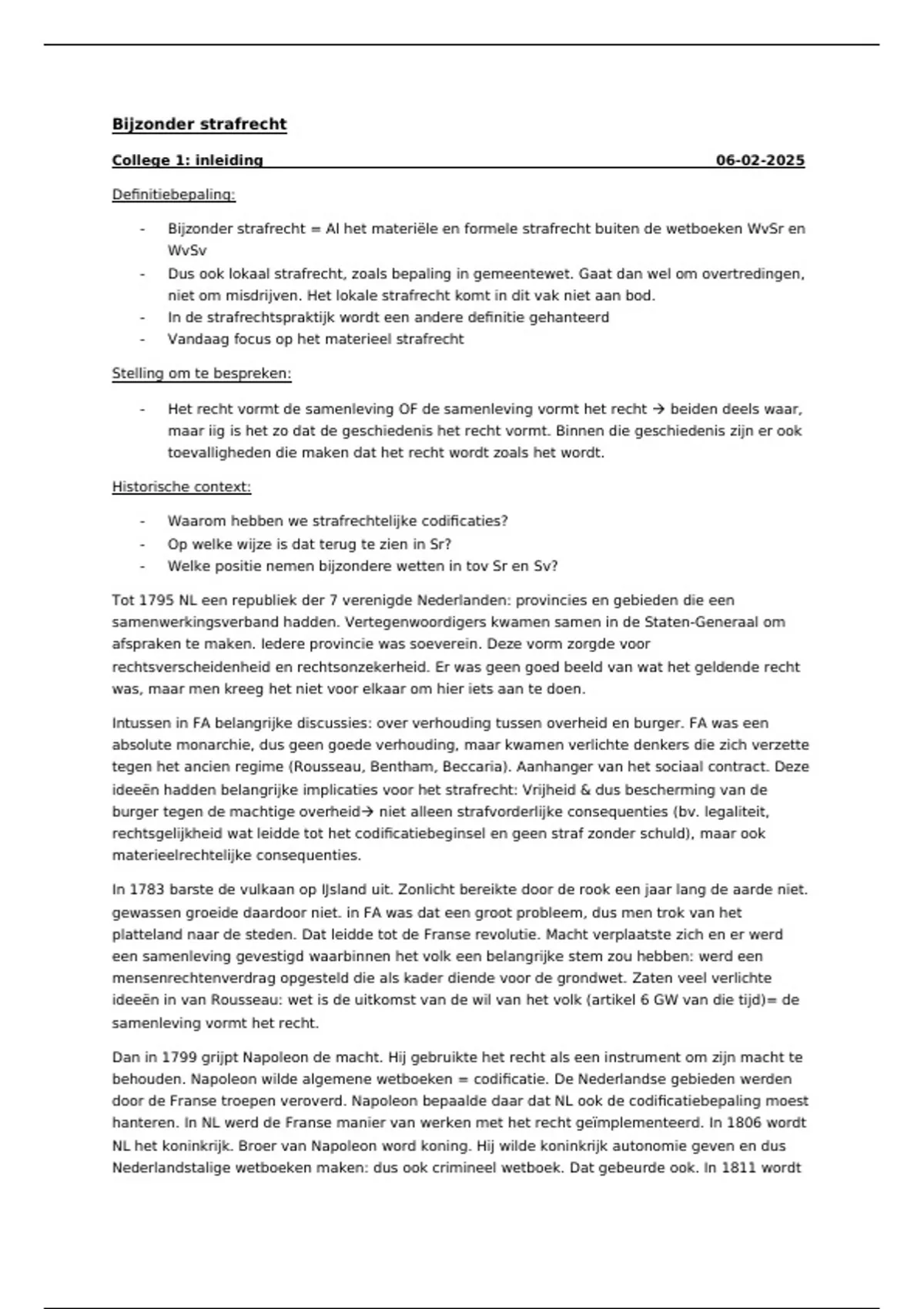 alle college aantekeningen en een samenvatting van de voorgeschreven artikelen van het vak Bijzonder strafrecht uit de master strafrecht aan de Radboud Universiteit.