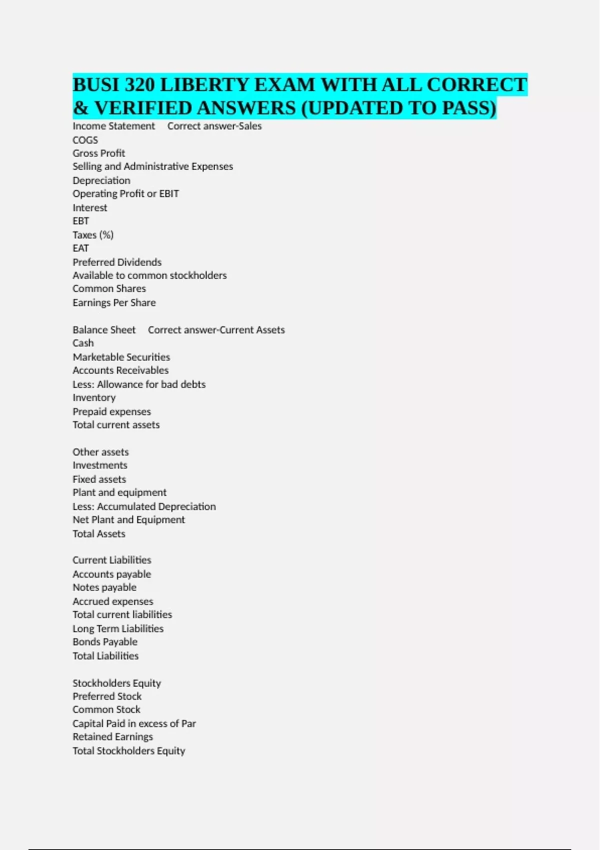 PACKAGE DEAL FOR BUSI 320 EXAM