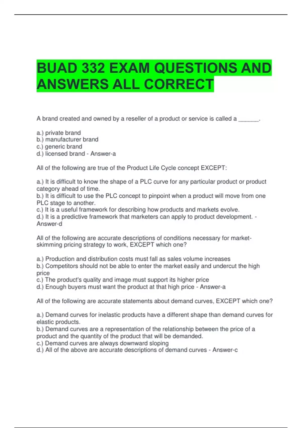 BUAD 332 EXAM QUESTIONS AND ANSWERS ALL CORRECT 2 Exam (elaborations) BUAD 332 STUDY TEST QUESTIONS AND ANSWERS 3 Exam (elaborations) BUAD 332 EXAM 4 QUESTIONS AND ANSWERS ALL CORRECT 4 Exam (elaborations) BUAD 332 EXAM WITH 100% CORRECT ANSWERS 5 Exam (elaborations) BUAD 332 EXAM 2 QUESTIONS AND ANSWERS ALL CORRECT 6 Exam (elaborations) BUAD