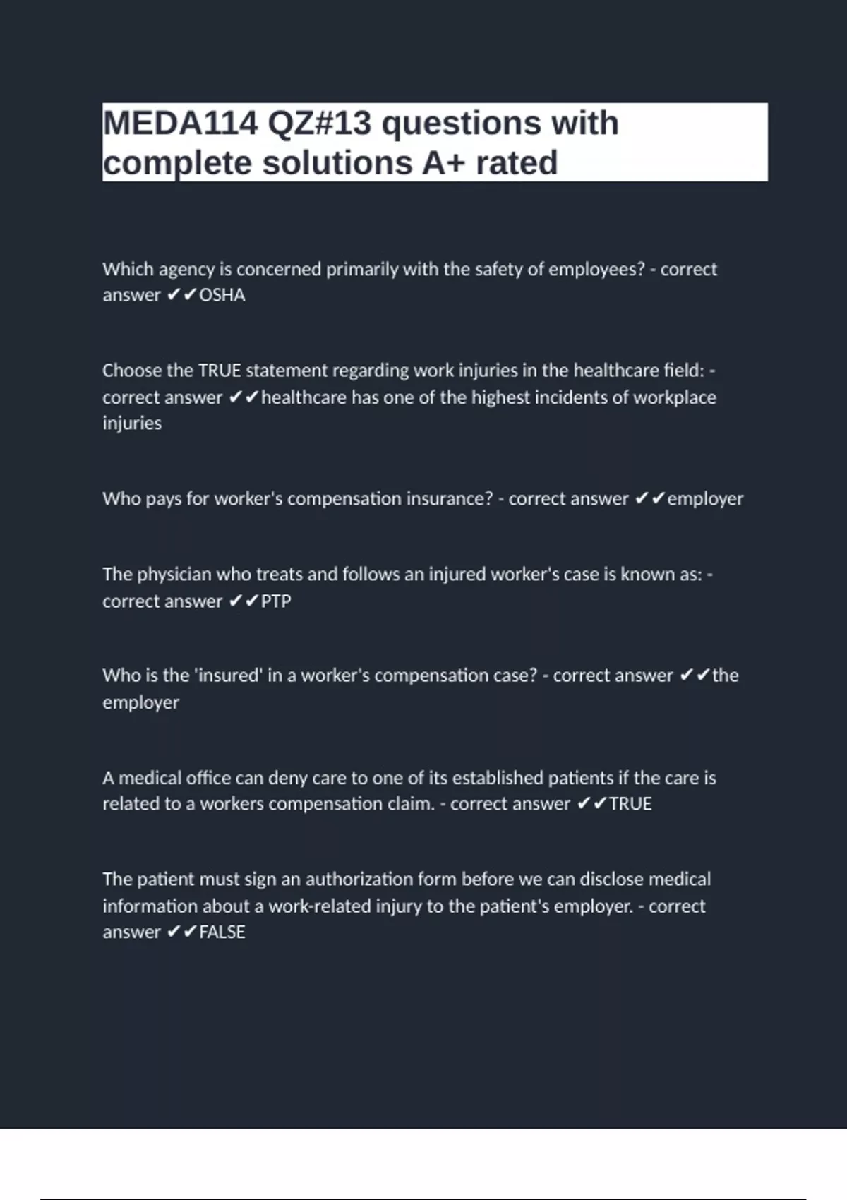 MEDA114 QZ#13 questions with complete solutions A+ rated