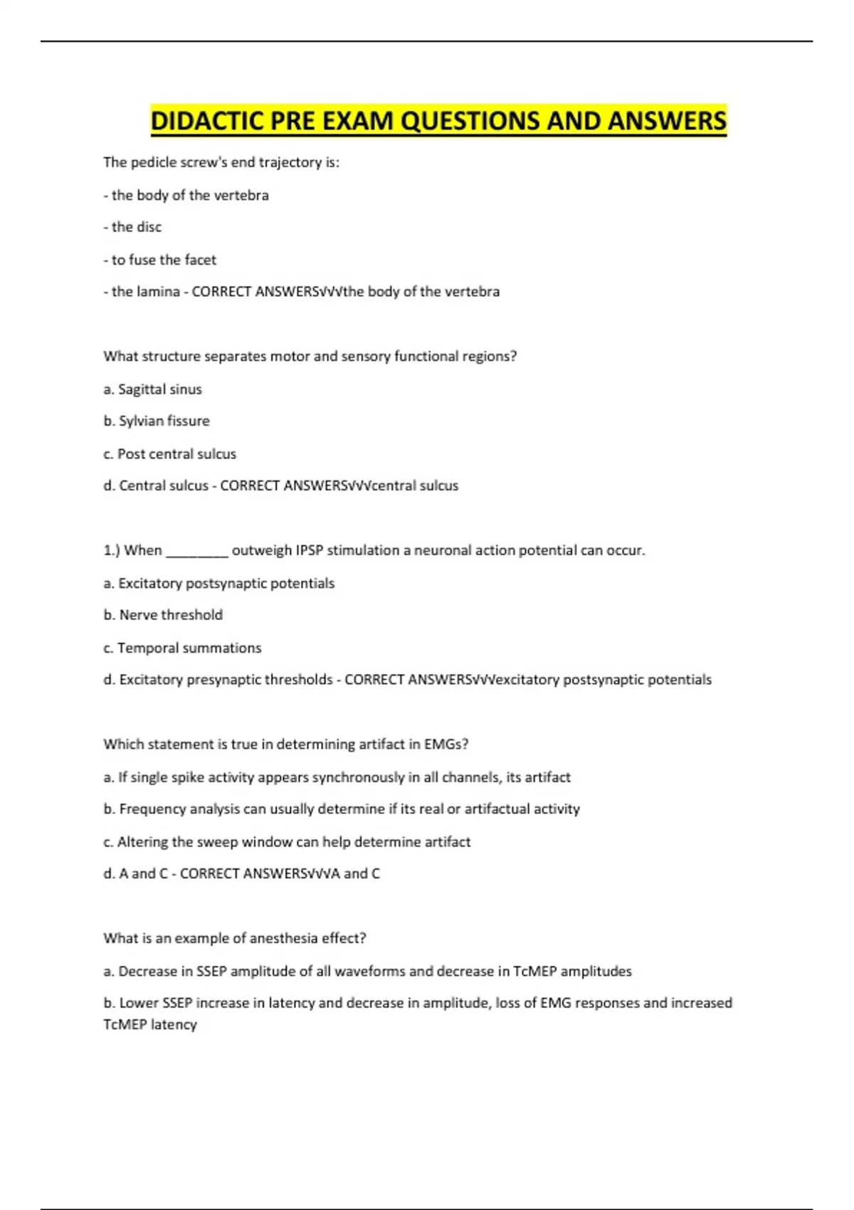 DIDACTIC BUNDLED EXAM QUESTIONS AND CORRECT ANSWERS