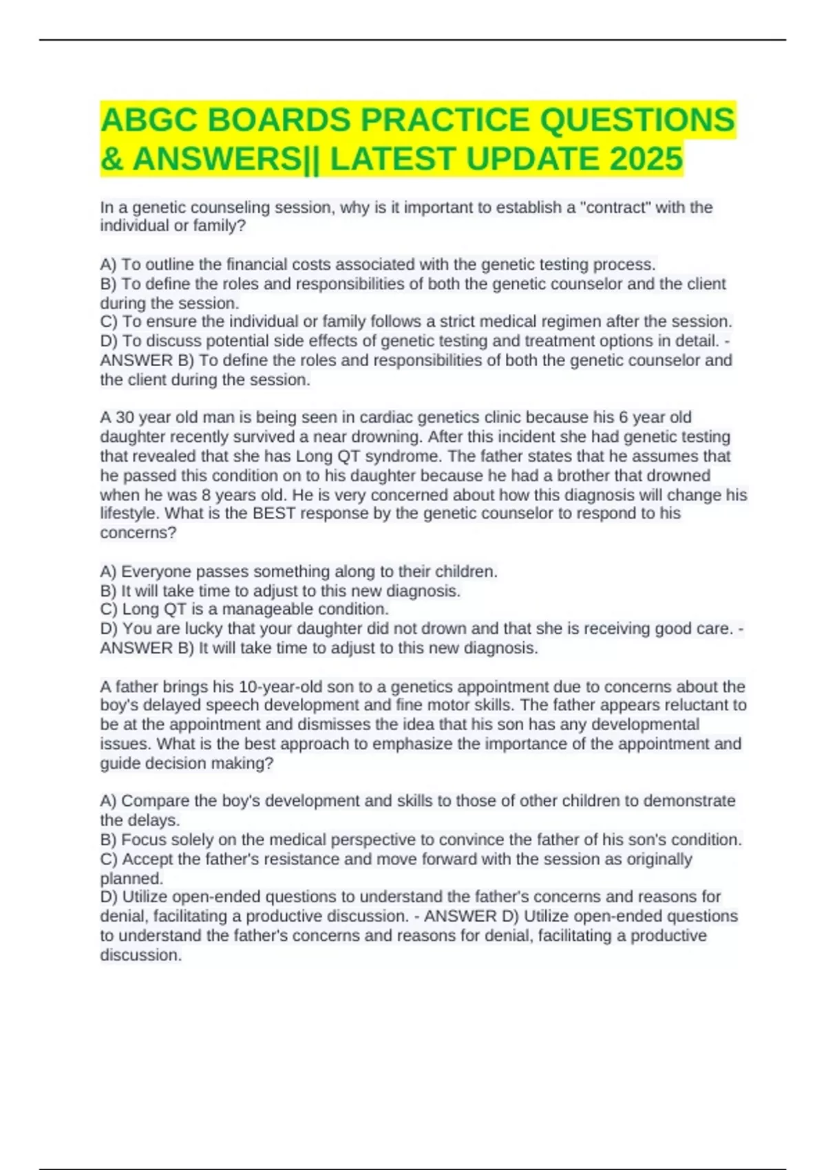 ABGC BOARDS PRACTICE QUESTIONS & ANSWERS|| LATEST UPDATE 2025 EXAM BUNDLE