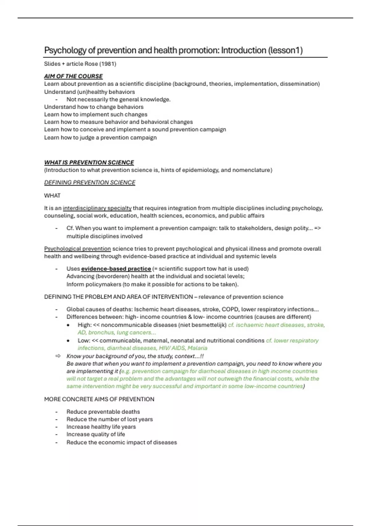 De voordeelbundel bevat alle samenvattingen van de hoorcolleges van Psychology of Prevention and Health Promotion (academiejaar 2024–2025). Let op: de bundel bevat geen samenvattingen van de artikels (tip: ChatGPT kan hierbij misschien helpen). Veel succes met studeren!