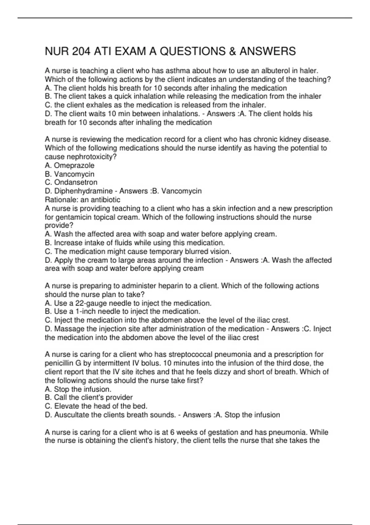 NUR 204 ATI EXAM A QUESTIONS & ANSWERS 2 Exam (elaborations) NUR 204 ATI MODULES EXAM -1 Q&A 2025 3 Exam (elaborations) NUR 204- EXAM 1 QUESTIONS & ANSWERS 4 Exam (elaborations) NUR 204 EXAM 1 QUESTIONS AND ANSWERS 5 Exam (elaborations) NUR 204 EXAM 1 TESTBANK QUESTIONS 6 Exam (elaborations) NUR 204 EXAM 2 QUESTIONS & ANSWERS 7 Exam (elaborat