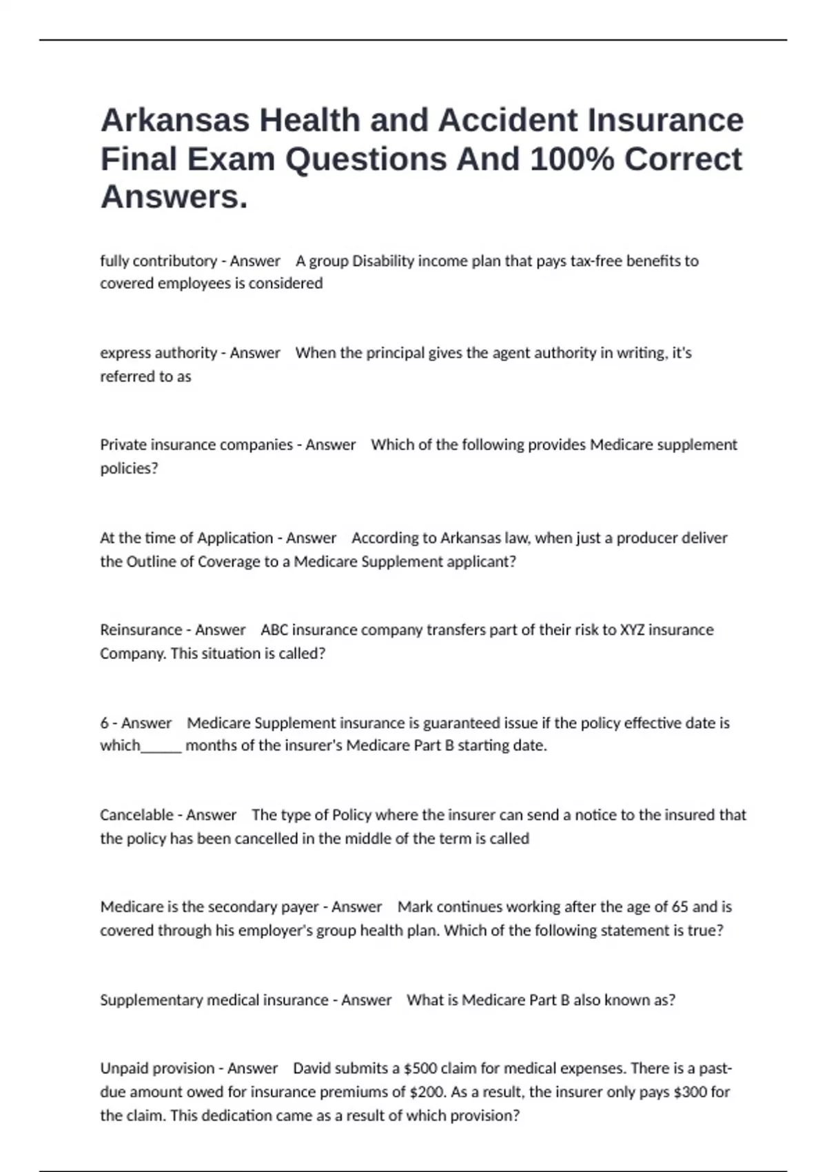 ARKANSAS HEALTH INSURANCE EXAM PACKAGE DEAL BUNDLE GRADED A+