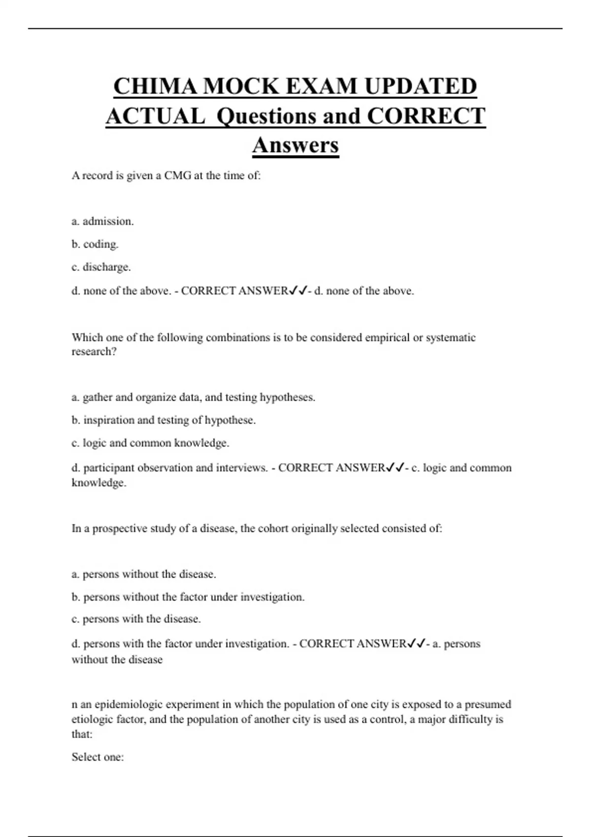 CHIMA NCE Bundled Exam Questions WITH CORRECT Answers