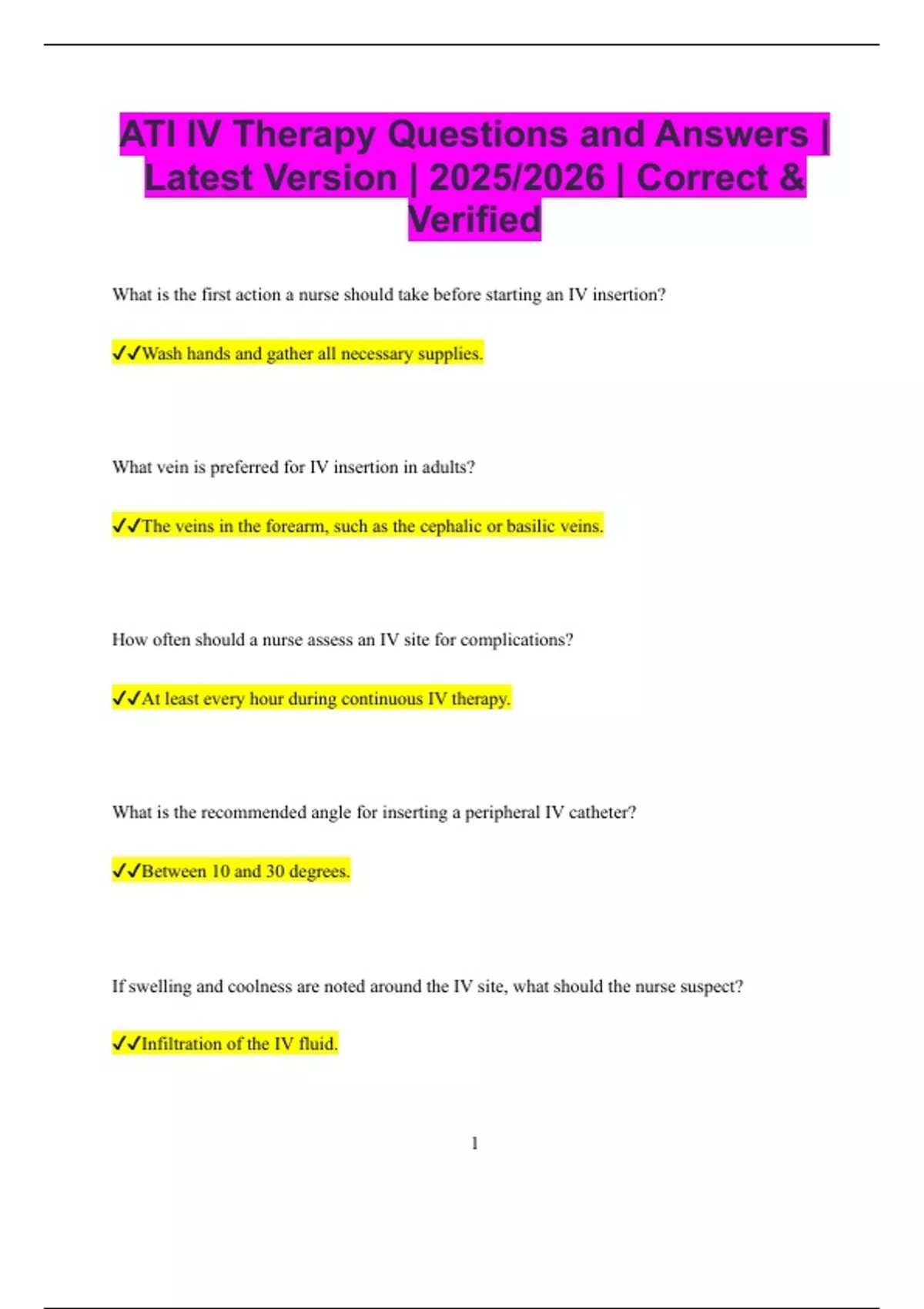 ATI IV Therapy and Peripheral Access Bundled Exams Questions and Answers Multiple Versions Latest Updates (2025/2026) (Correct and Verified)