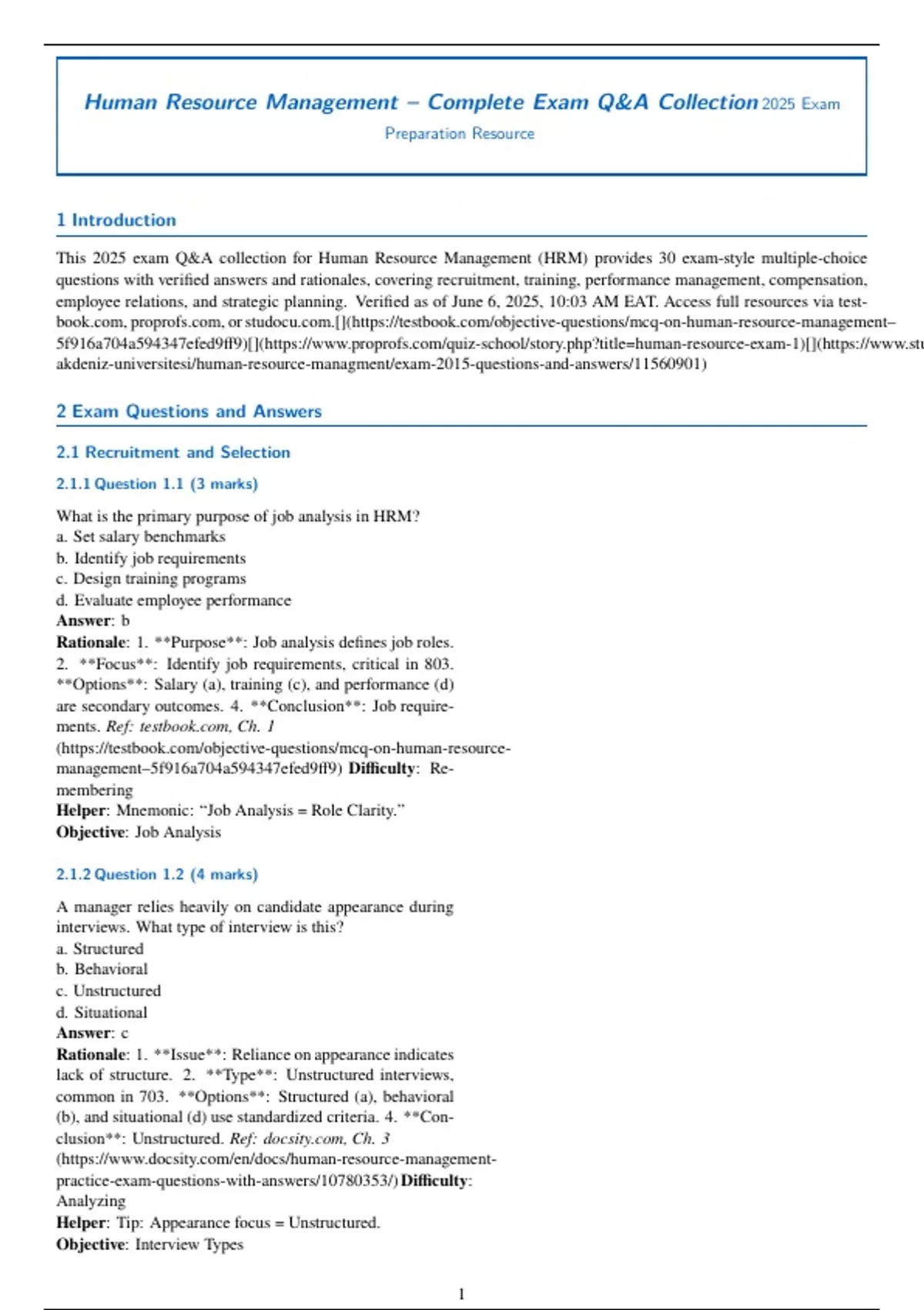 Human Resource Management– Complete Exam Q&A Collection2025 Exam
