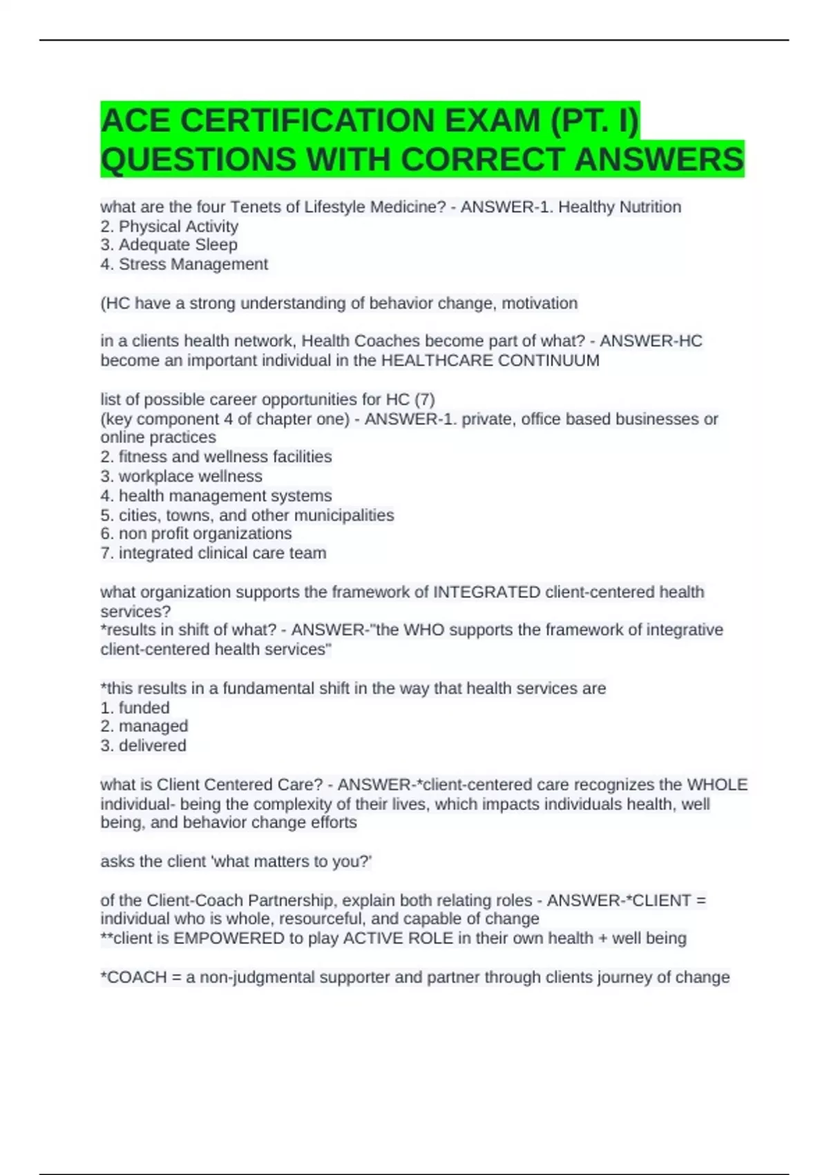 PERSONAL TRAINING EXAM CHAPTERS 1-5 QUESTIONS AND ANSWERS 2 Exam (elaborations) CERTIFIED MEDICAL EXERCISE SPECIALIST EXAM QUESTIONS AND ANSWERS 3 Exam (elaborations) BRAND NEW ACE PT EXAM STUDY GUIDE QUESTIONS AND ANSWERS 4 Exam (elaborations) ACE PRACTICE EXAM #2 QUESTIONS WITH COMPLETE SOLUTIONS 5 Exam (elaborations) ACE PRACTICE EXAM GUIDE