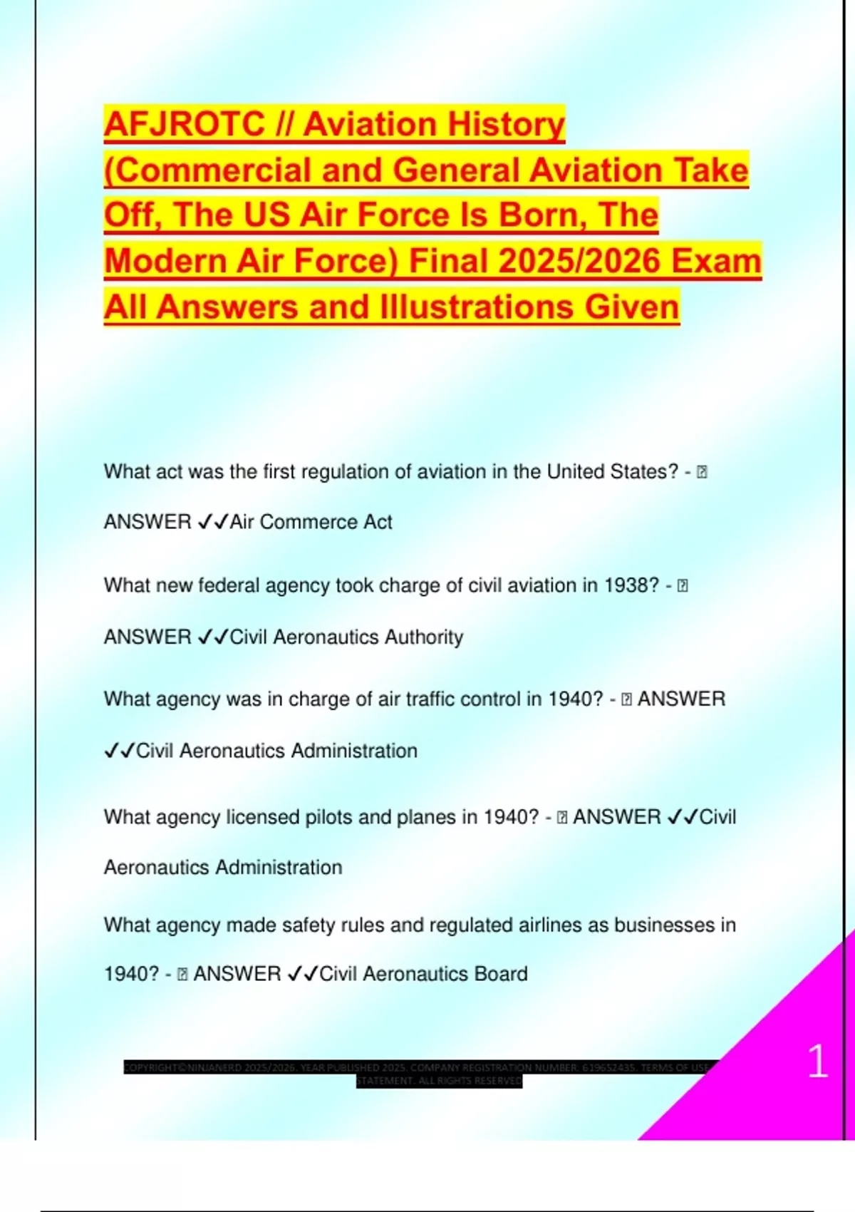 AFJROTC // Aviation History (Commercial and General Aviation Take Off, The US Air Force Is Born, The Modern Air Force) Final 2025/2026 Exam All Answers and Illustrations Given