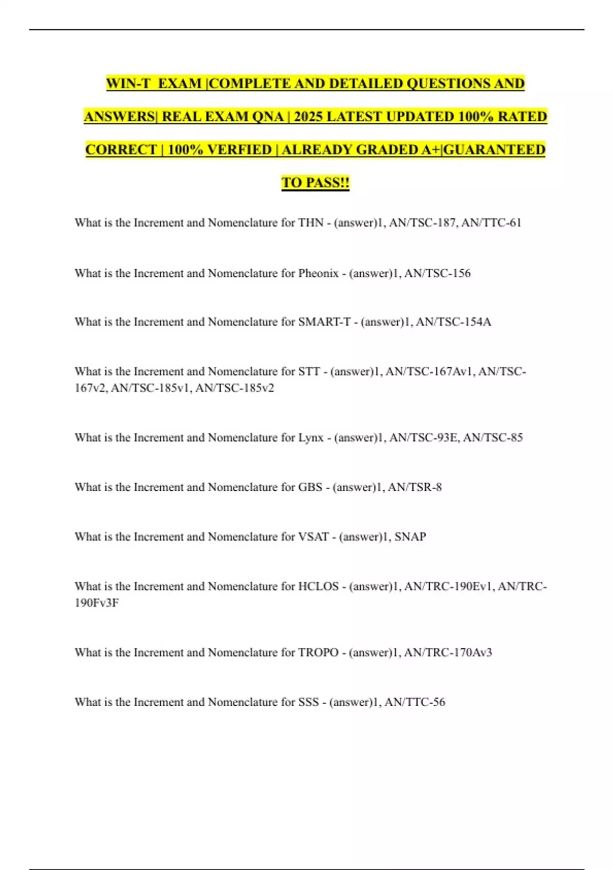 PACKAGE DEAL FOR WIN-T EXAM |COMPLETE AND DETAILED QUESTIONS AND ANSWERS| REAL EXAM QNA | 2025 LATEST UPDATED 100% RATED CORRECT | 100% VERFIED | ALREADY GRADED A |GUARANTEED TO PASS!!| 2 COPIES