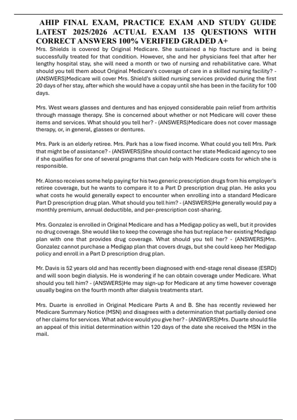 AHIP FINAL EXAM, PRACTICE EXAM AND STUDY GUIDE LATEST 2025/2026 ACTUAL EXAM 135 QUESTIONS WITH CORRECT ANSWERS 100% VERIFIED GRADED A+