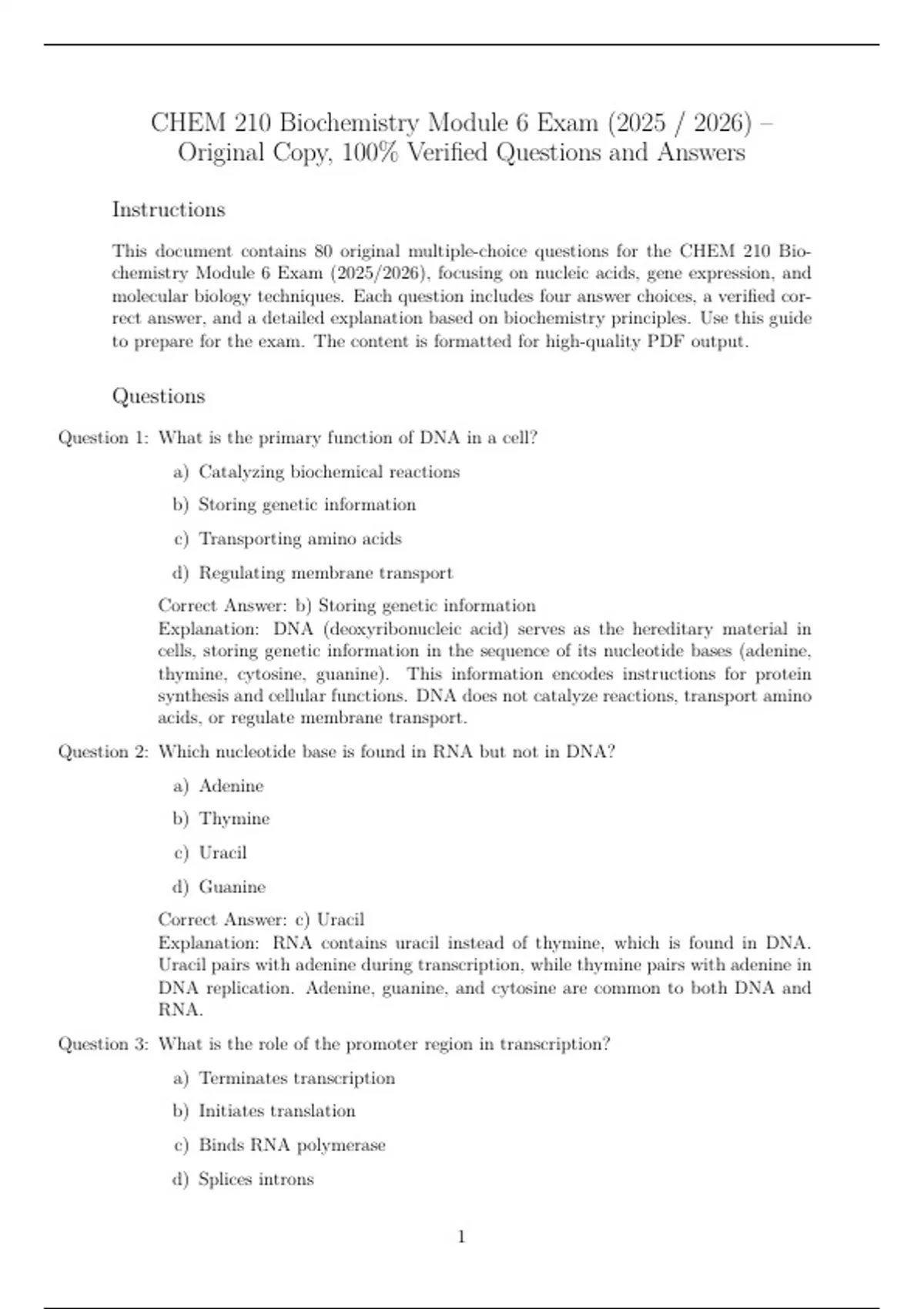 CHEM 210 Biochemistry Complete Exam Bundle (Modules 1–8 + Final) – Portage Learning 2024/2025 & 2025/2026 Questions and Verified Answers | 100% Guarantee Pass