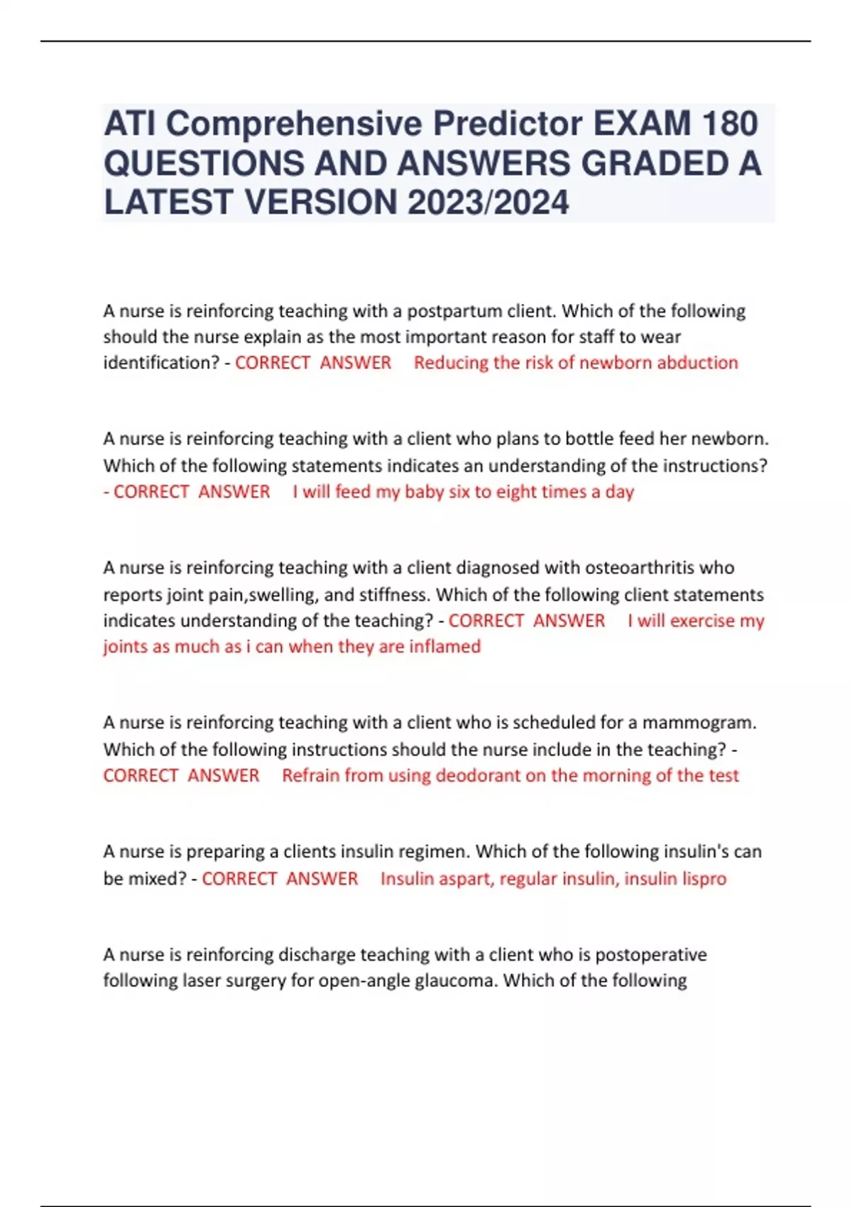 BUNDLE FOR ATI Comprehensive Predictor EXAM 180 QUESTIONS AND ANSWERS GRADED A LATEST VERSION 2023/2024