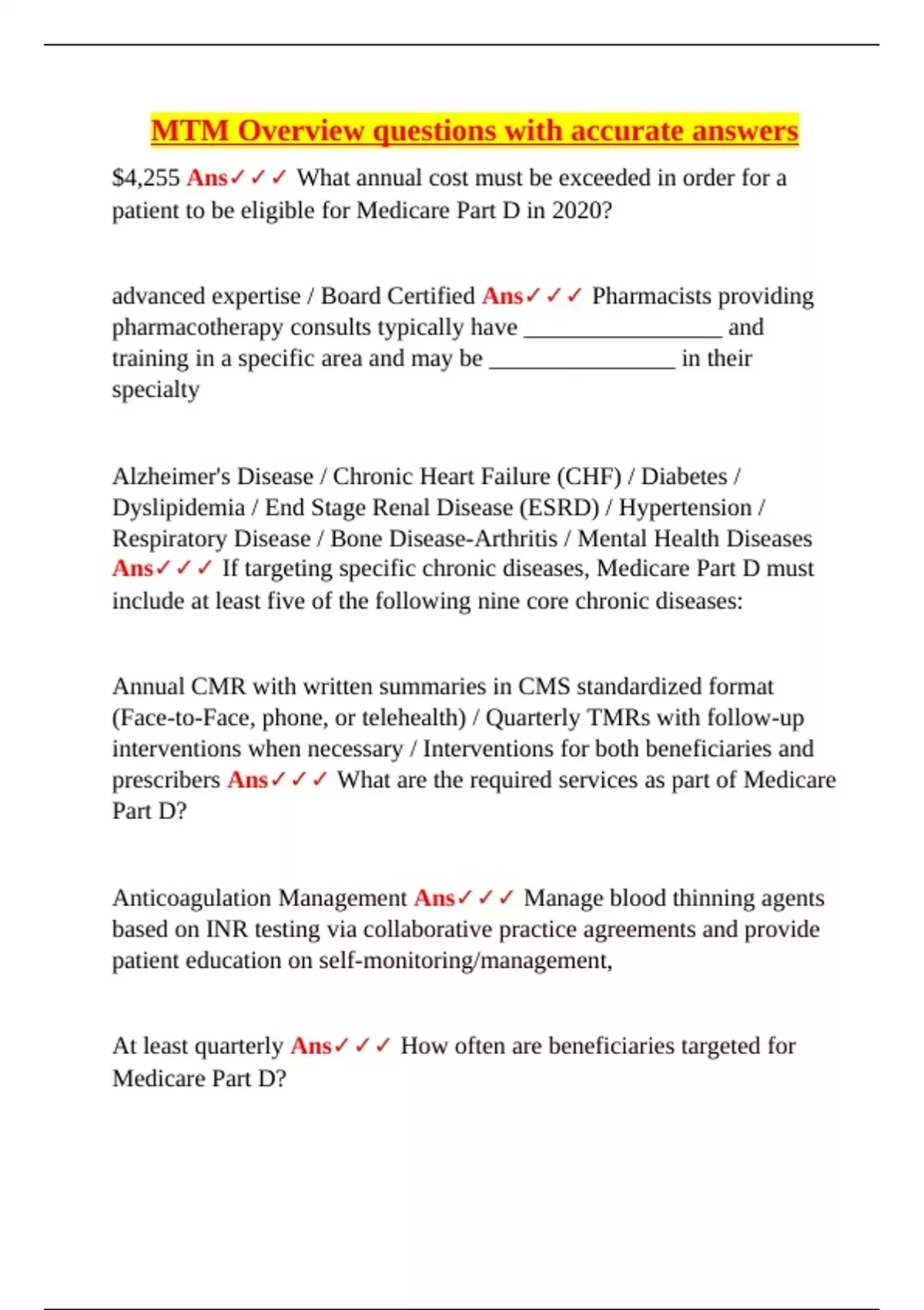 MTM Study Bundle | Verified Q&A | Medication Therapy Management & Patient-Centered Care Guide