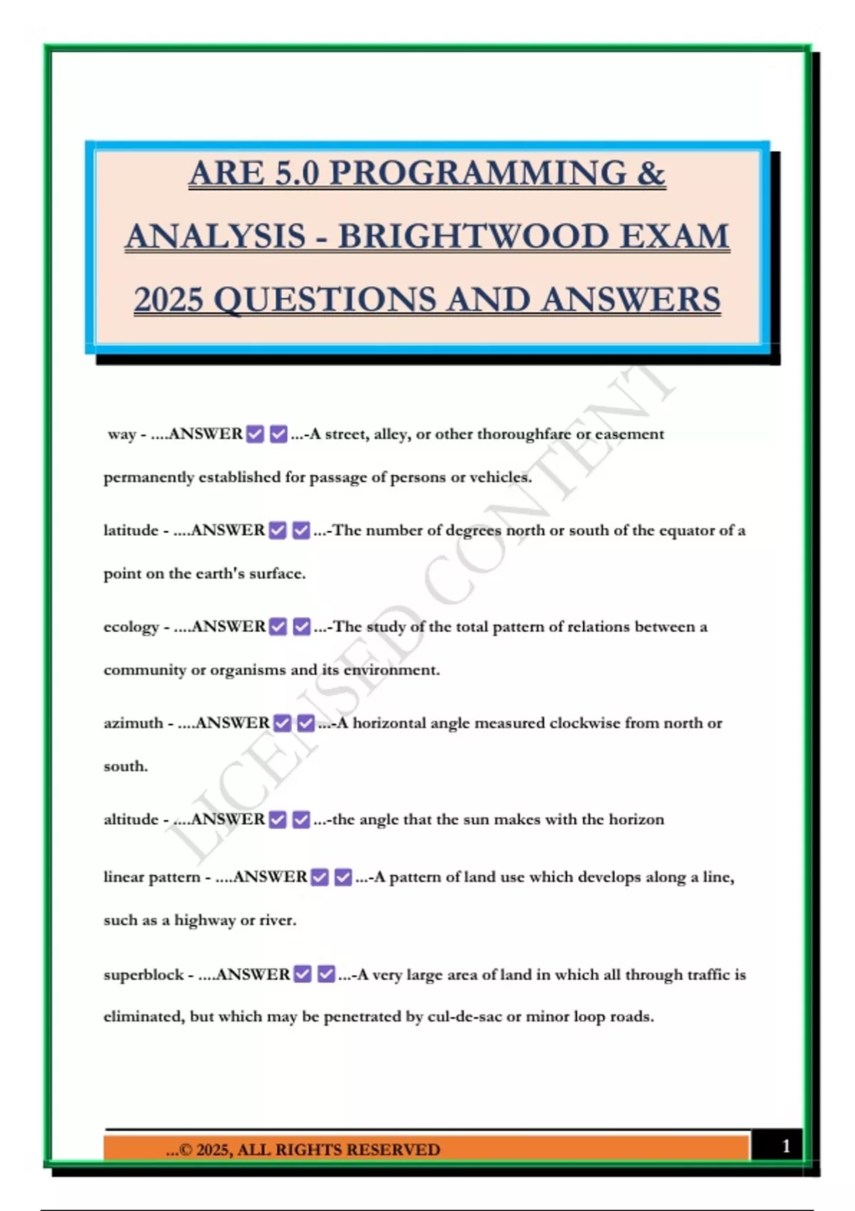 ARE 5.0 PROGRAMMING & ANALYSIS - BRIGHTWOOD GLOSSARY (S-Z) EXAM 2025 QUESTIONS AND ANSWERS