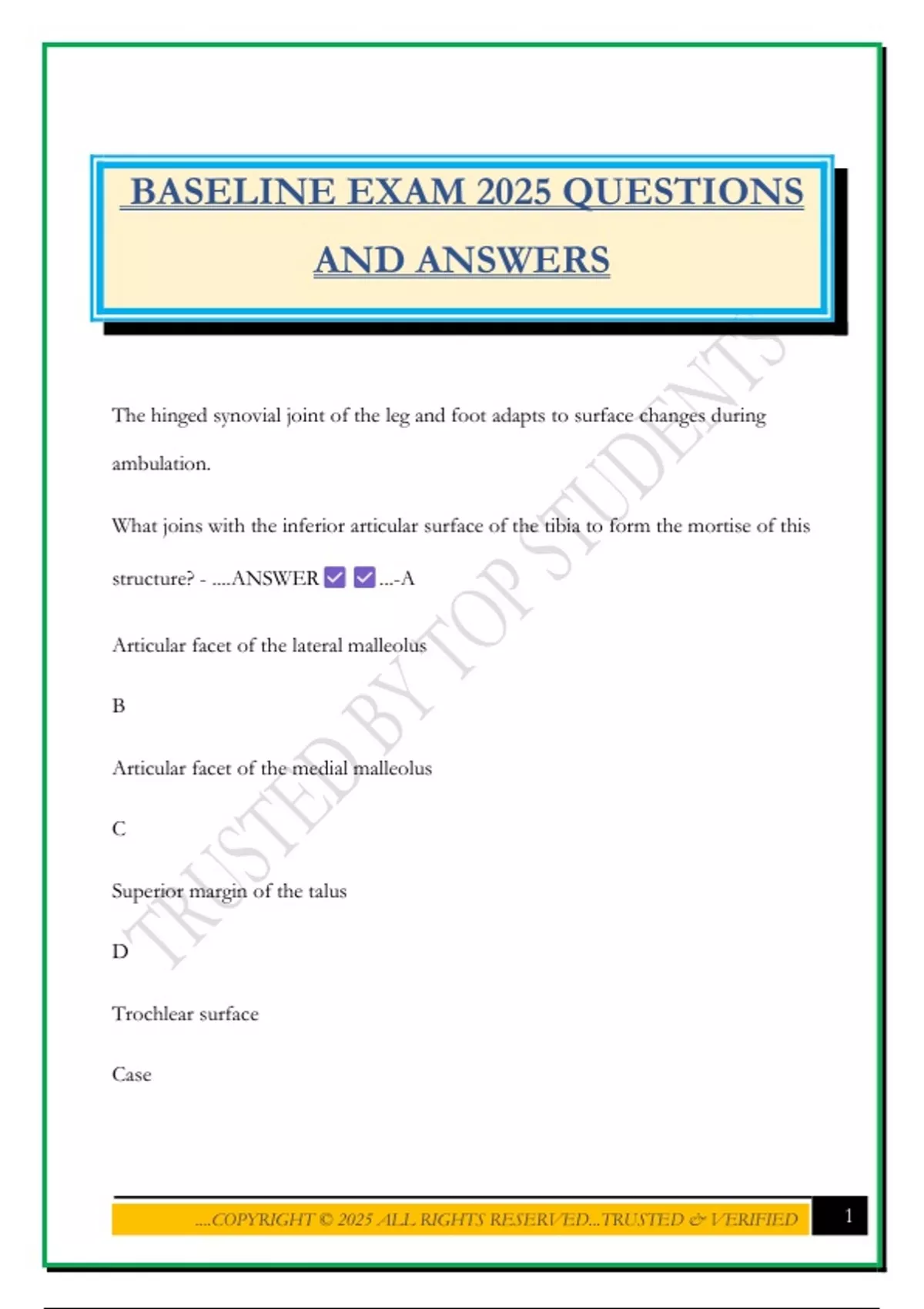 BASELINE Bundled Exams 2025 (Questions and Answers)