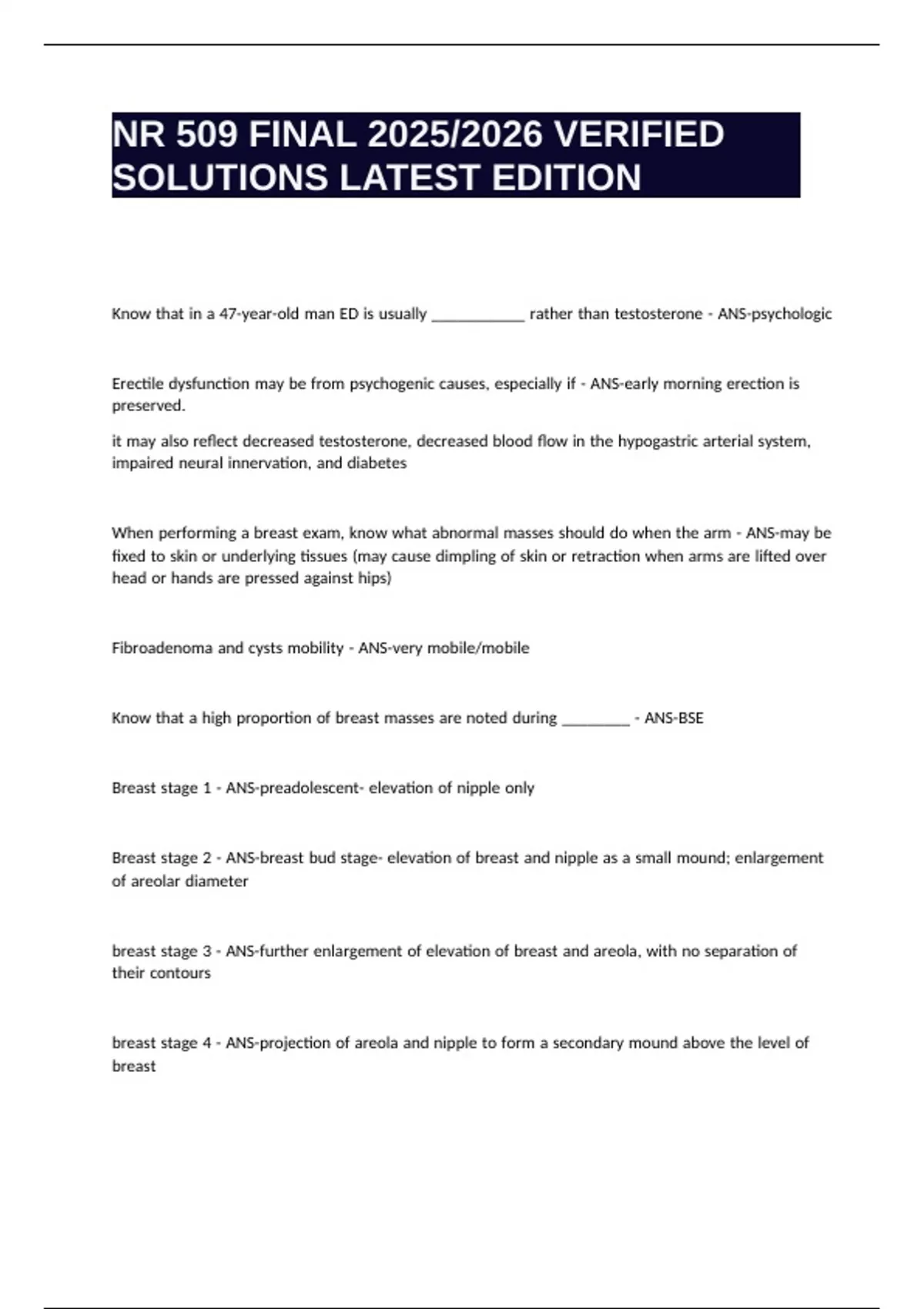 NR 509 FINAL 2025/2026 VERIFIED SOLUTIONS LATEST EDITION BUNDLED HERE