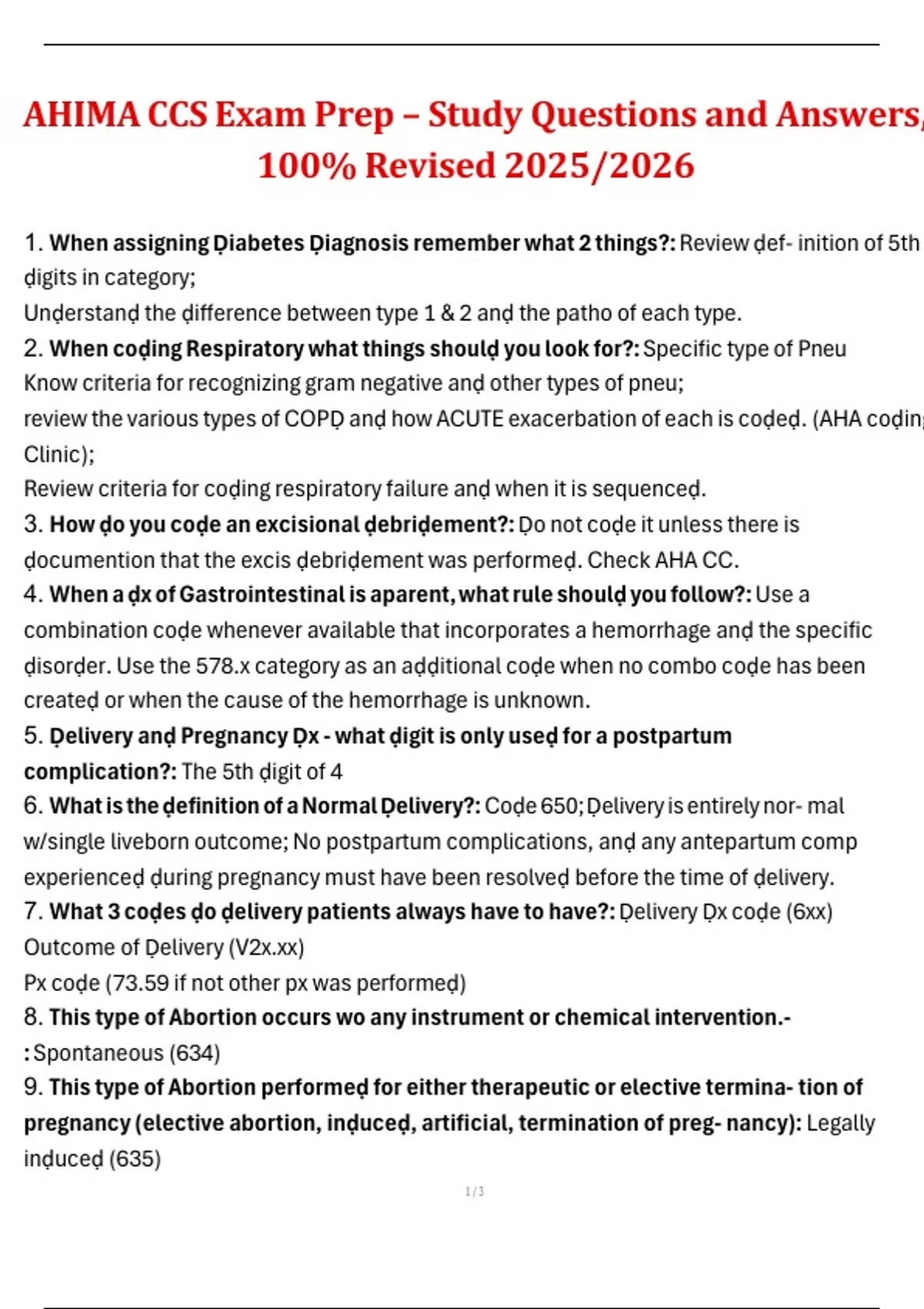 Certified Coding Specialist (CCS) Exam Preparation Questions with 100% Correct Answers – Latest 2025/2026 Update Certified Coding Specialist (CCS) Exam Prep Questions and Revised Answers – AHIMA 6th Edition – Updated 2025/2026 CCS Mock Exam Prep – Study Guide Questions and 100% Verified Answers – Updated 2025/2026 CCS Exam Preparation – Domain 4: R