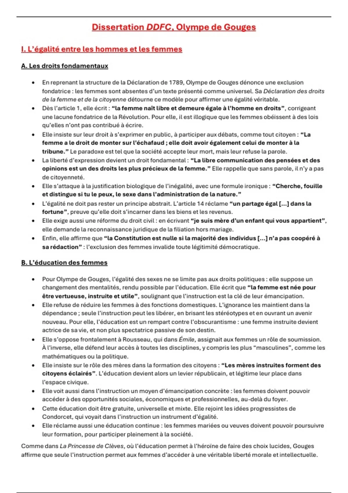 Résumé Synthèse DDFC d'Olympe de Gouges - Bac Français Première Générale