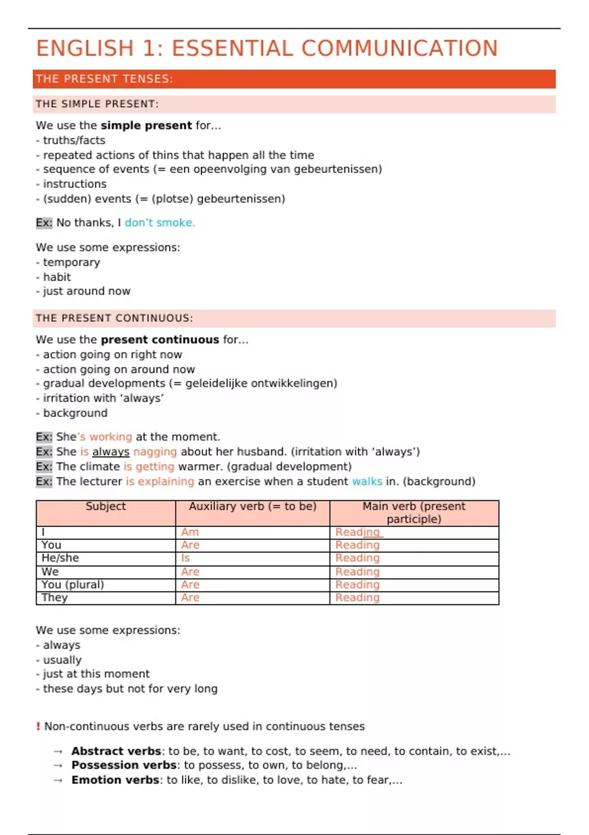 Volledige samenvatting grammar English 1: essential communication - 1e jaar communicatie Artevelde