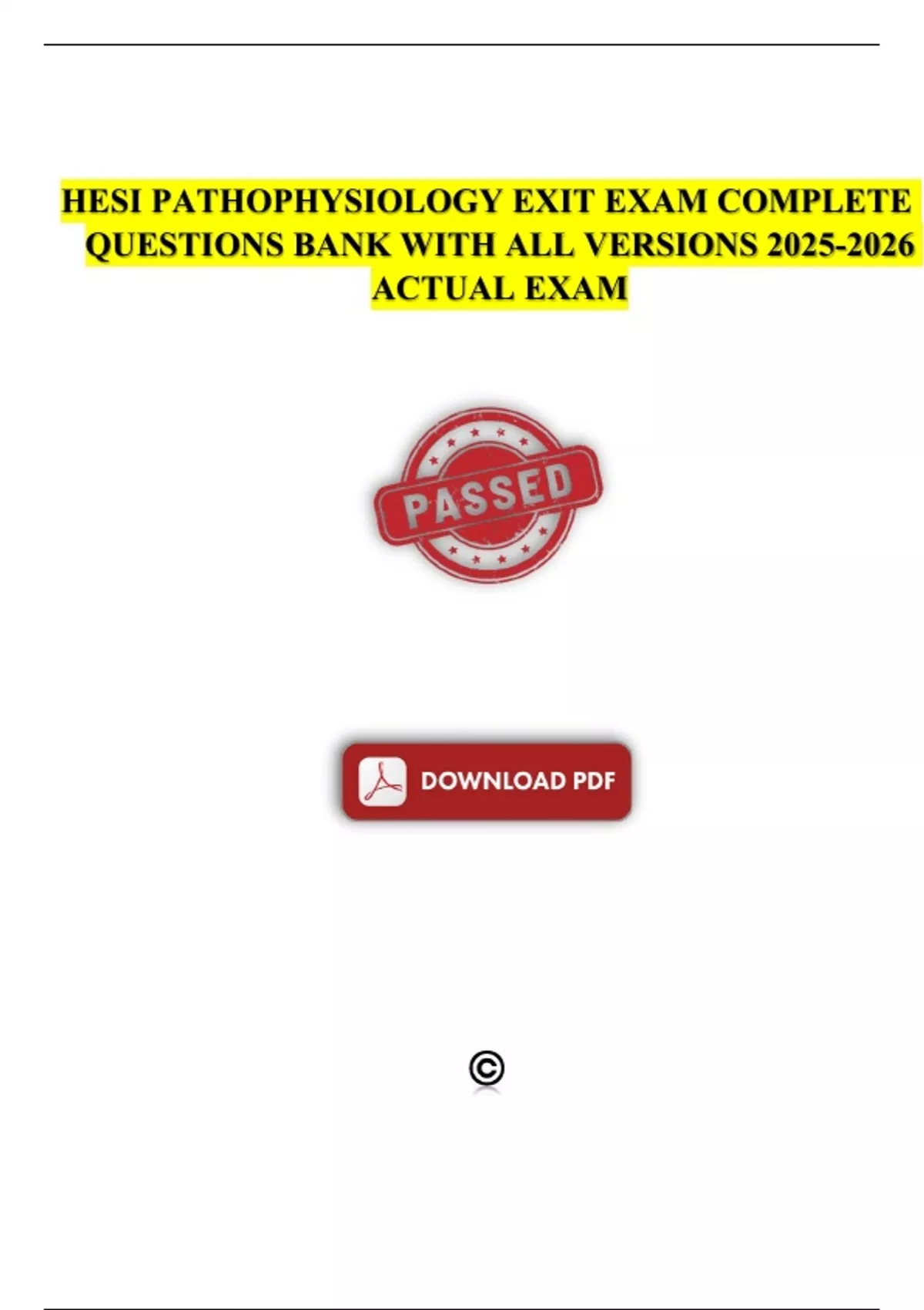 HESI Pathophysiology EXIT EXAM & Practice Exam | 2025/2026 Latest Edition | All Comprehensive Questions with Detailed Answer Breakdowns | 100% Alignment with Current Test Blueprint | Graded A