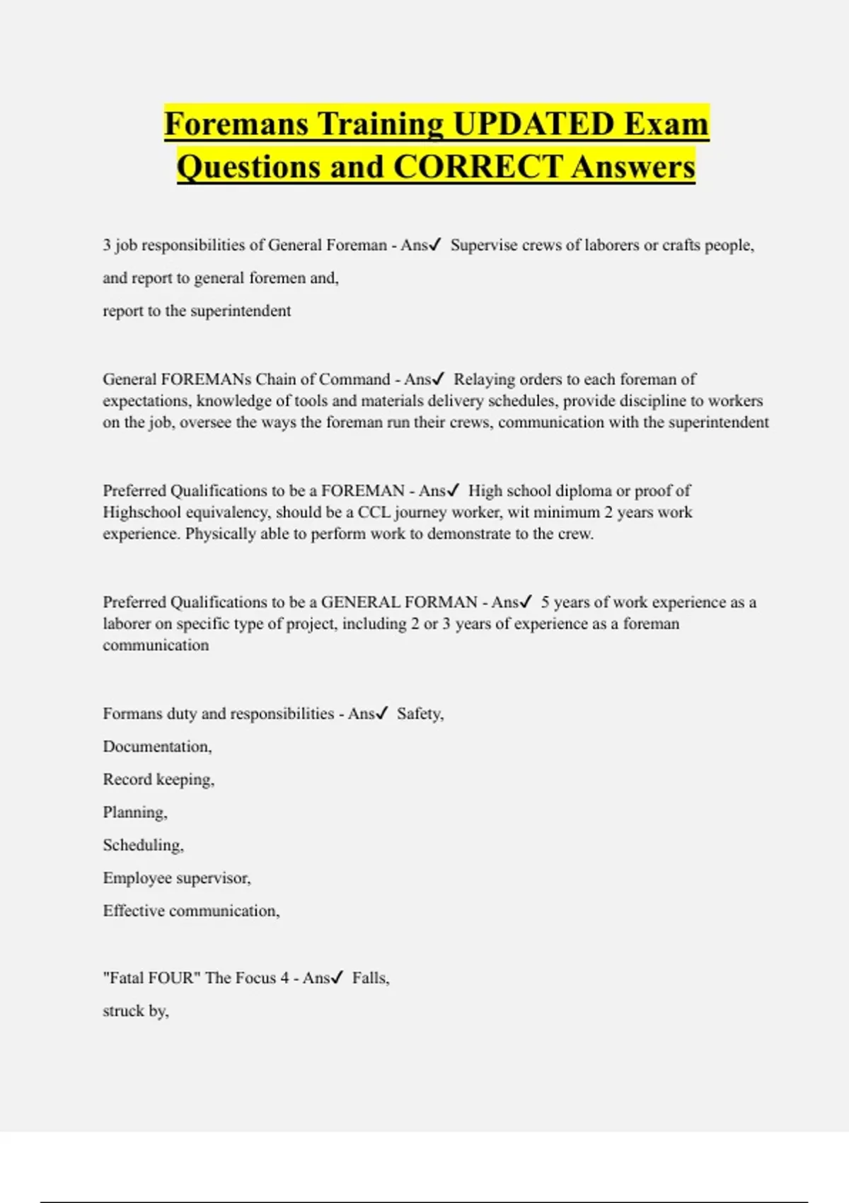 Foreman Bundled Exam Questions WITH CORRECT Answers