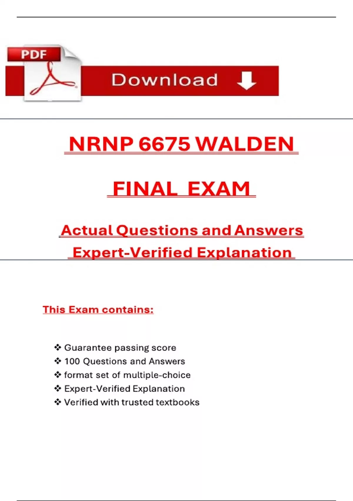 NRNP 6675 Final Exam Complete Package – Latest 2026 Questions and Verified Answers | Walden University PMHNP Prep