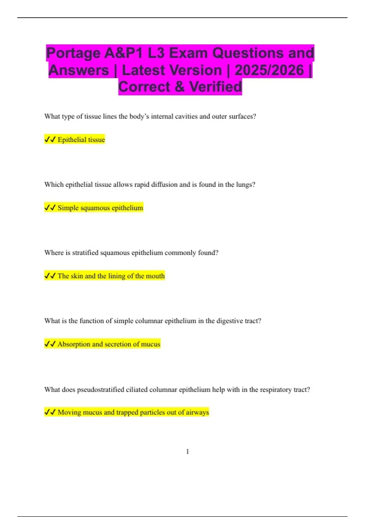 Portage Learning Anatomy & Physiology 1& 2 (All Labs) Bundled Exams Questions and Answers Multiple Versions Latest Updates (2025/2026) (Complete, Accurate, and Verified)