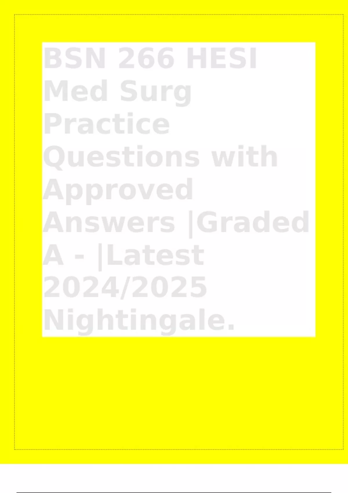 BSN 266 HESI Med Surg Practice Questions with Approved Answers.