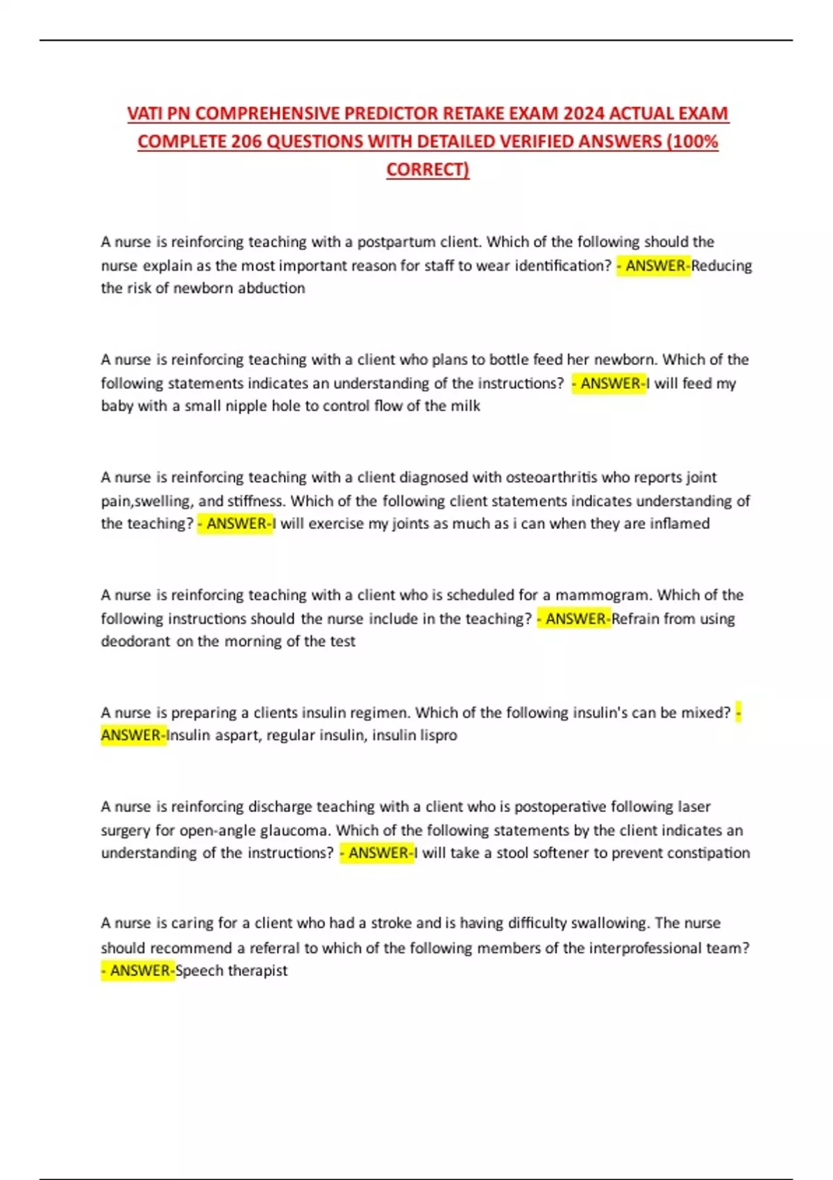 NURSING +ALL COURSES VERIFIED QUESTIONS AND ANSWERS REAL EXAM QUESTIONS, VERIFIED ANSWERS AND SUMMARIZED PAST PAPERS. PERFECT FOR ANYONE AIMING FOR TOP GRADES. UPDATED WEEKLY. STUDY SMART. PASS FAST.
