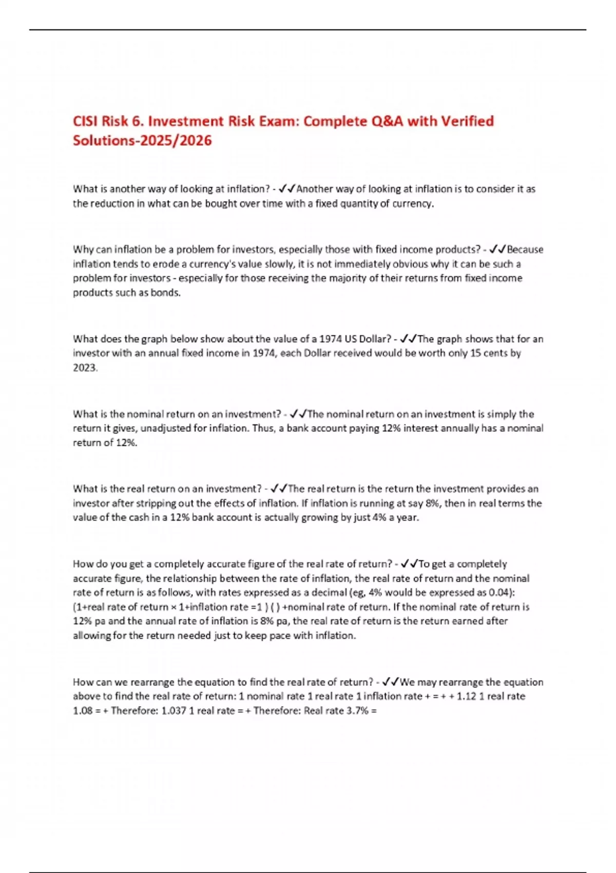 CISI Risk 6. Investment Risk Exam: Complete Q&A with Verified Solutions-2025/2026