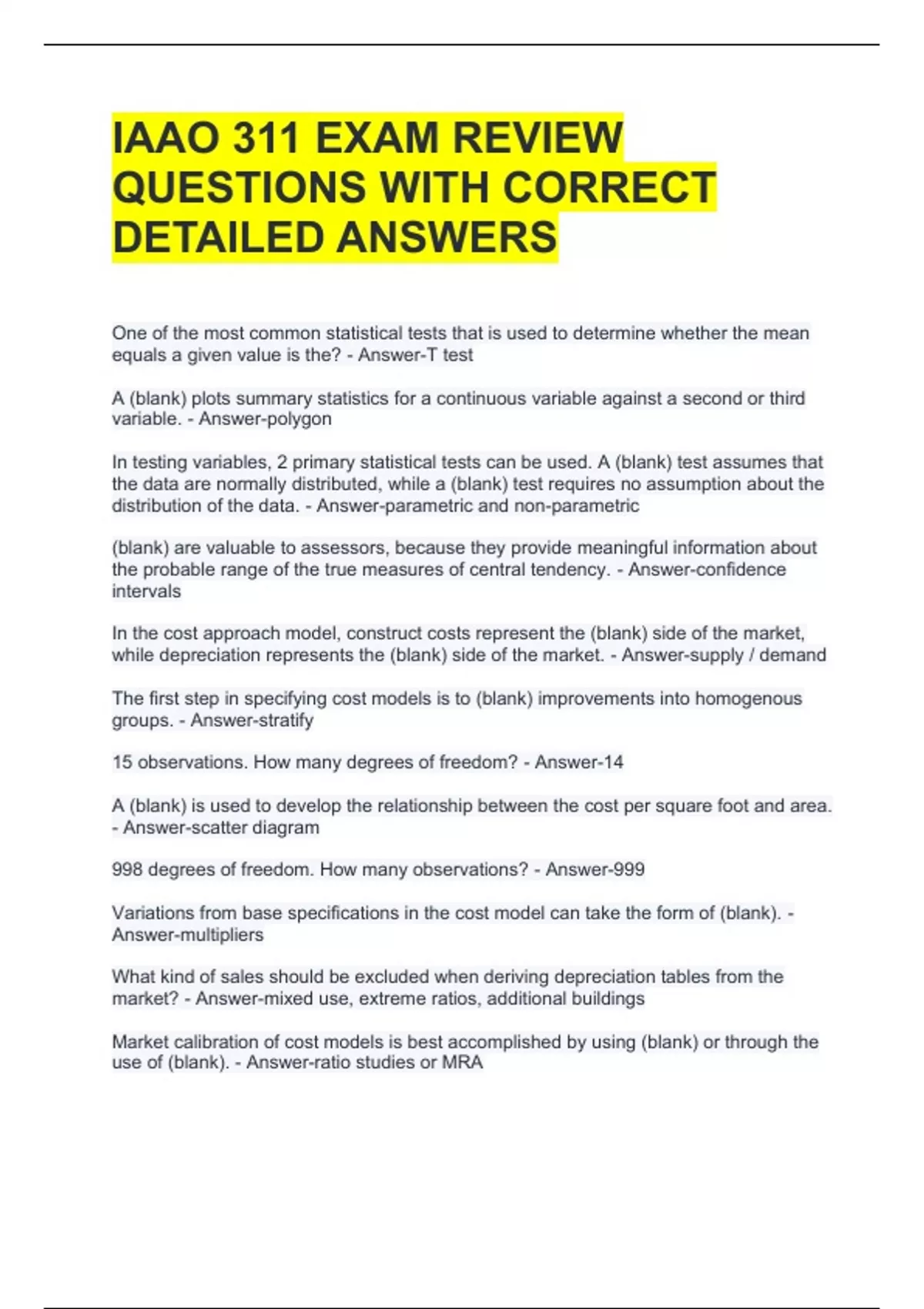 IAAO 311 - QUIZ 1 & QUIZ 2 COMBINED SET EXAM QUESTIONS AND ANSWERS 2 Exam (elaborations) IAAO 311 EXAM QUESTIONS WITH CORRECT DETAILED ANSWERS (GRADED A+) 3 Exam (elaborations) IAAO 311 EXAM REVIEW QUESTIONS WITH CORRECT DETAILED ANSWERS 4 Exam (elaborations) IAAO 311 REVIEW QUESTIONS AND QUIZZES WITH CORRECT ANSWERS