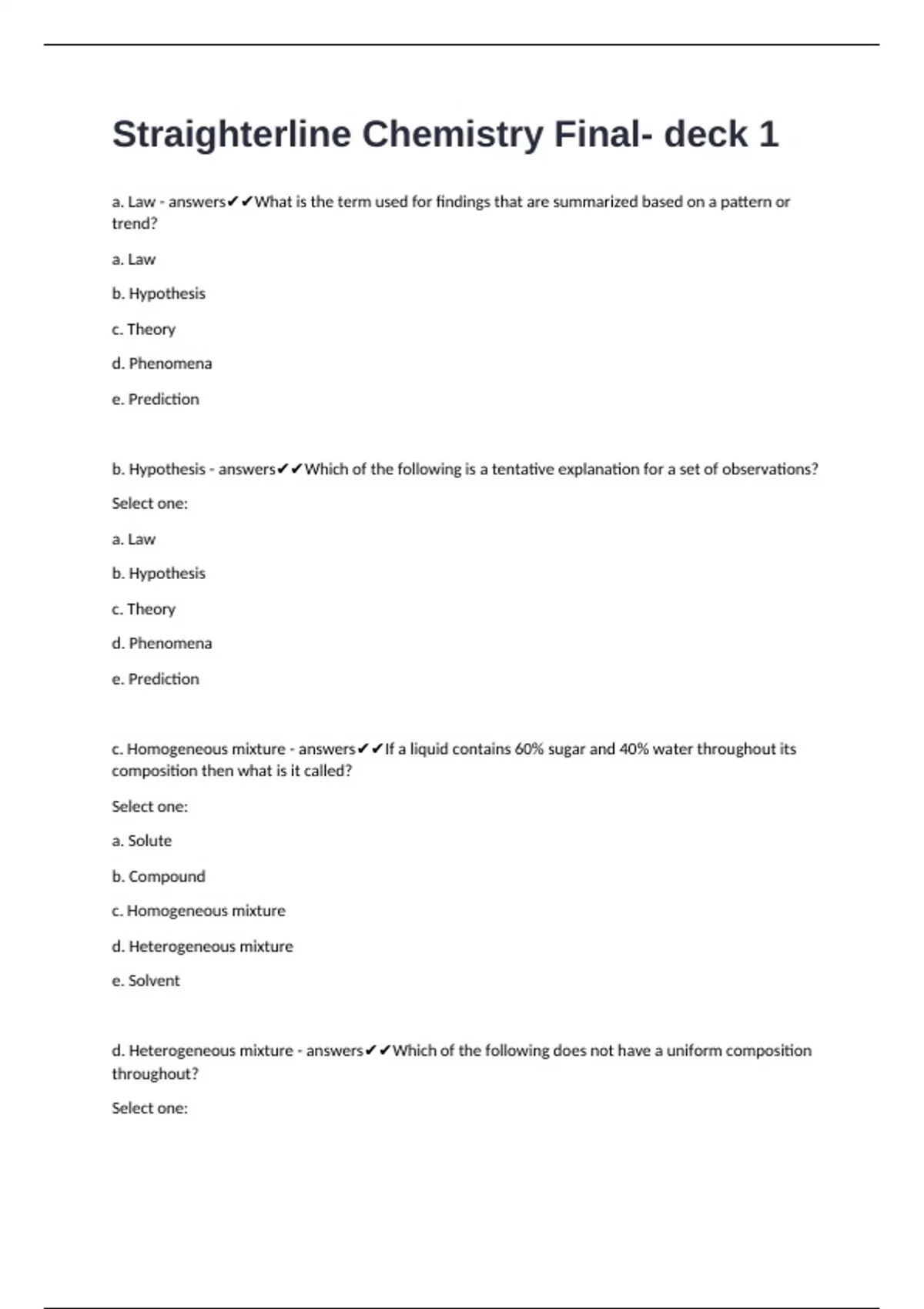 Straighterline Chemistry Fina3 questions and answers