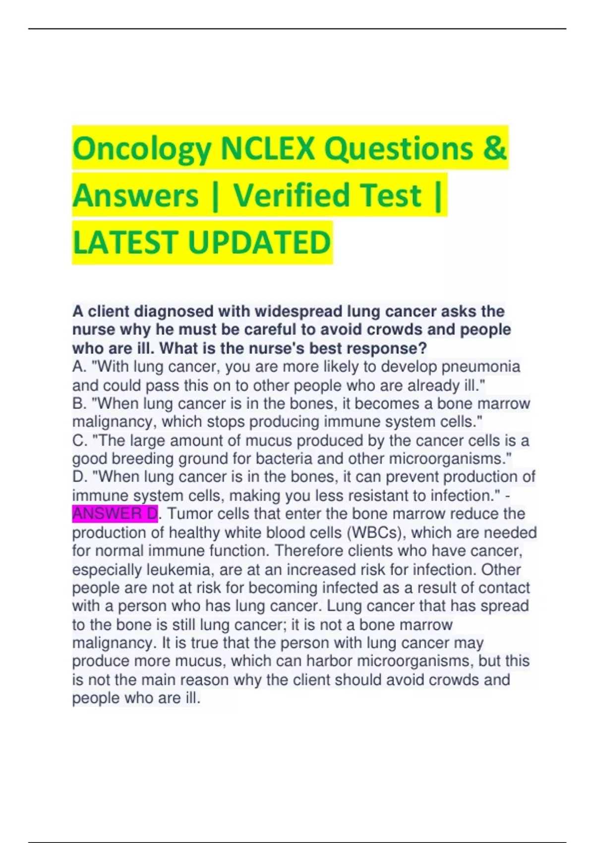 NCLEX Oncology NCLEX Oncology NCLEX/NCLEX Oncology Combined Sets!!!