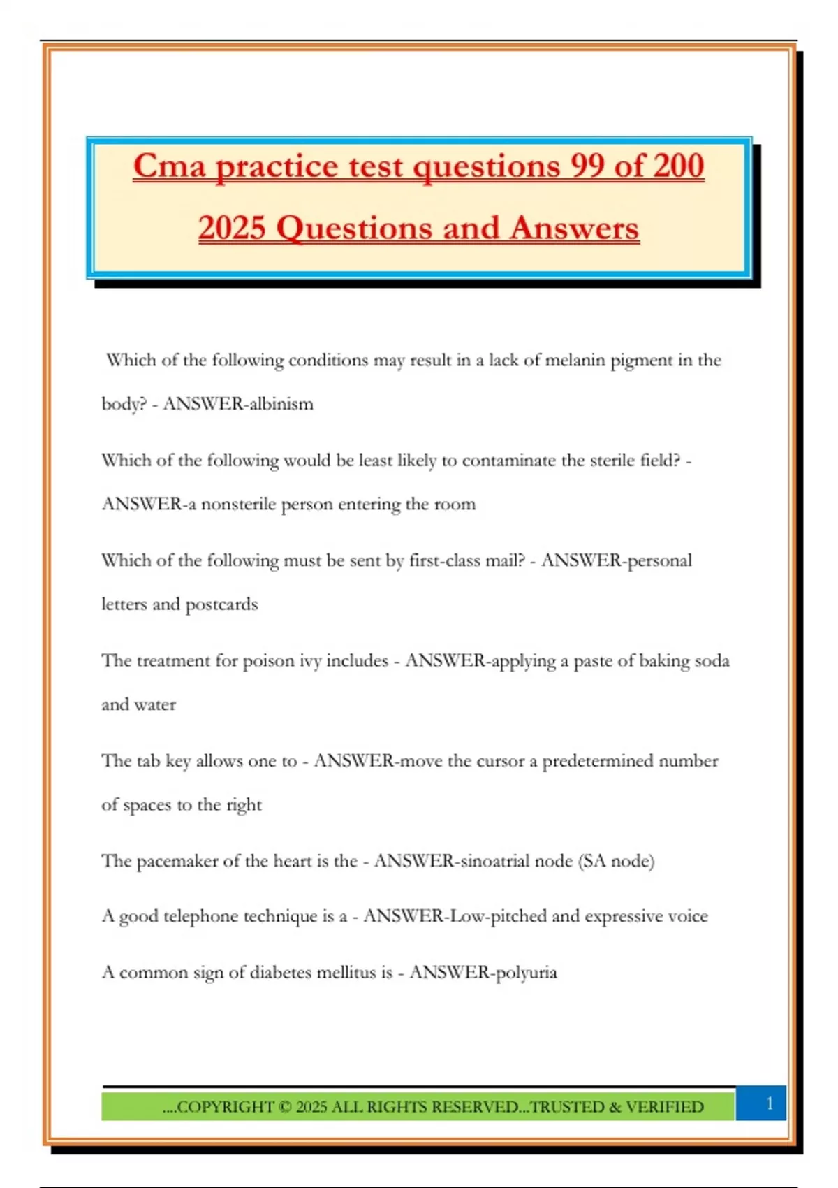 Cma practice test questions 99 of 200 2025 Questions and Answers