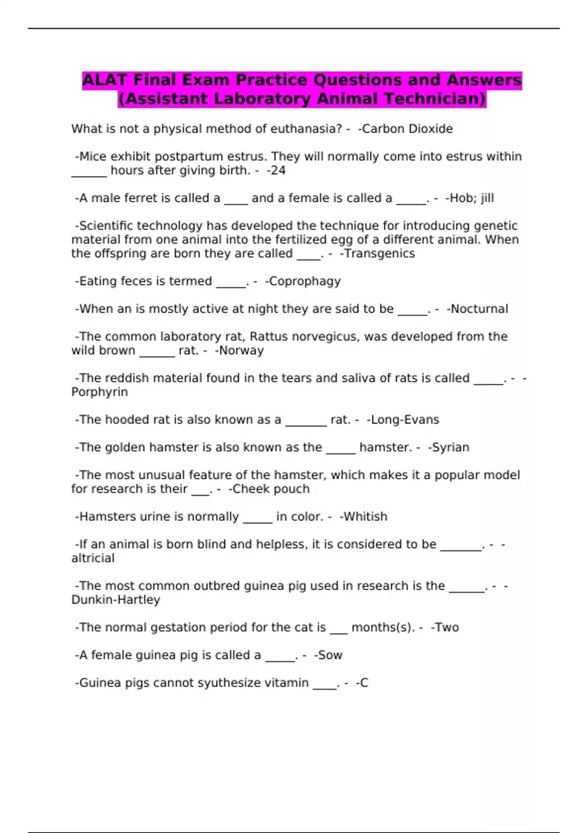ALAT Final Exam Practice Questions and Answers (Assistant Laboratory Animal Technician)