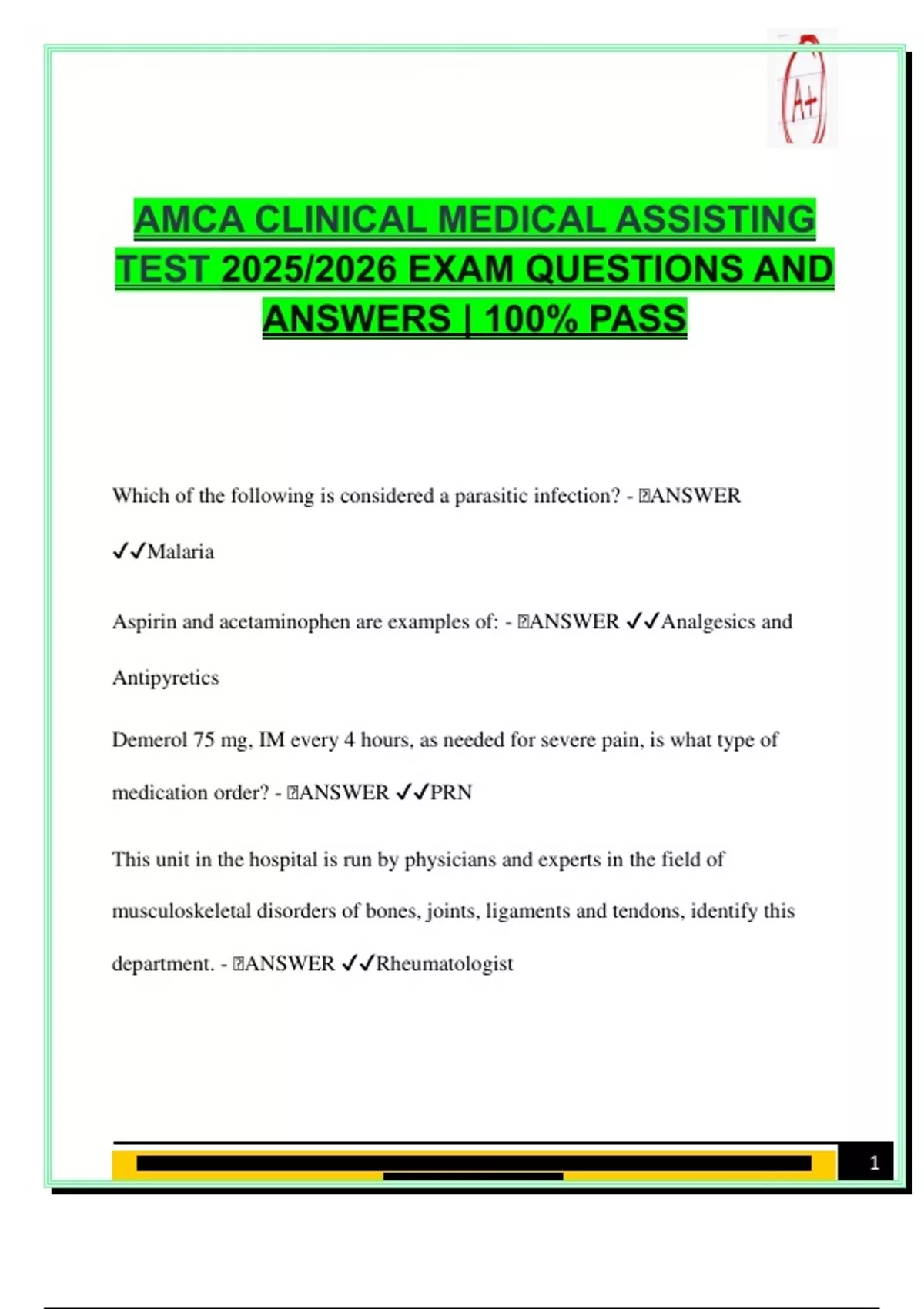 100 Exam Questions with Answers – AMCA Clinical Medical Assisting Test 2025/2026 (Full Certification Prep)
