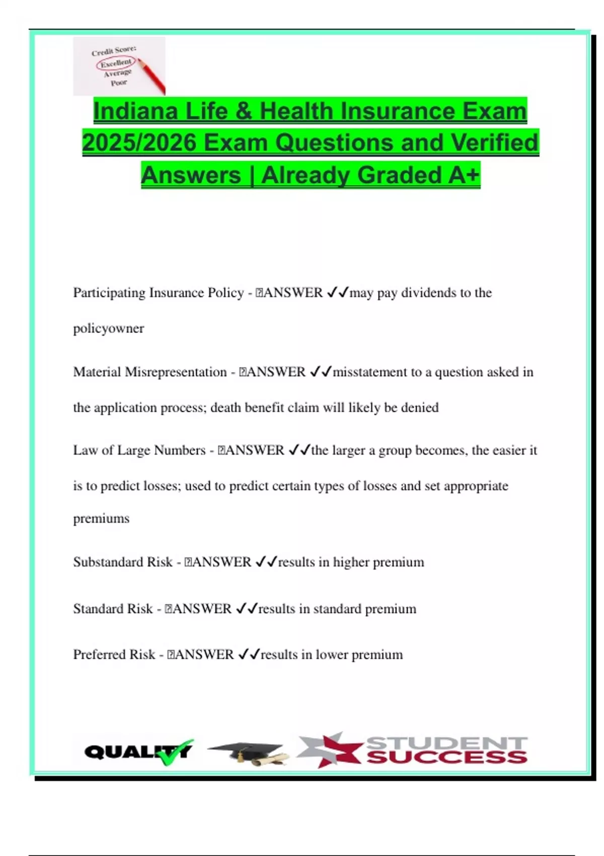 INDIANA LIFE & HEALTH INSURANCE EXAM PACKAGE DEAL QUESTIONS AND VERIFIED DETAILED ANSWERS | 100% GUARANTEED PASS | ALREADY GRADED A+