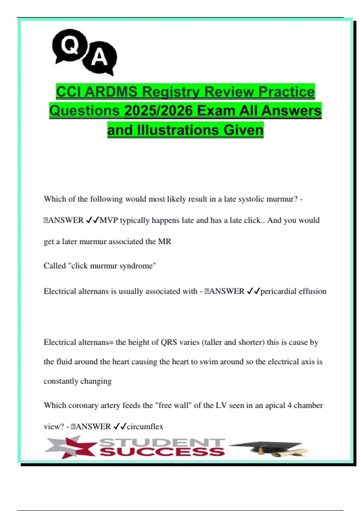 CCI ARDMS Registry Review 2025/2026 | 70+ Echocardiography Practice Questions with Verified Answers & Doppler Illustrations | Cardiac Sonography, Murmurs, Doppler, VSDs