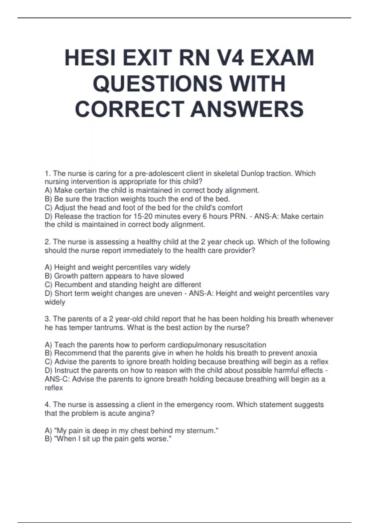 HESi final exams package deal questions with 100% detailed and verified answers