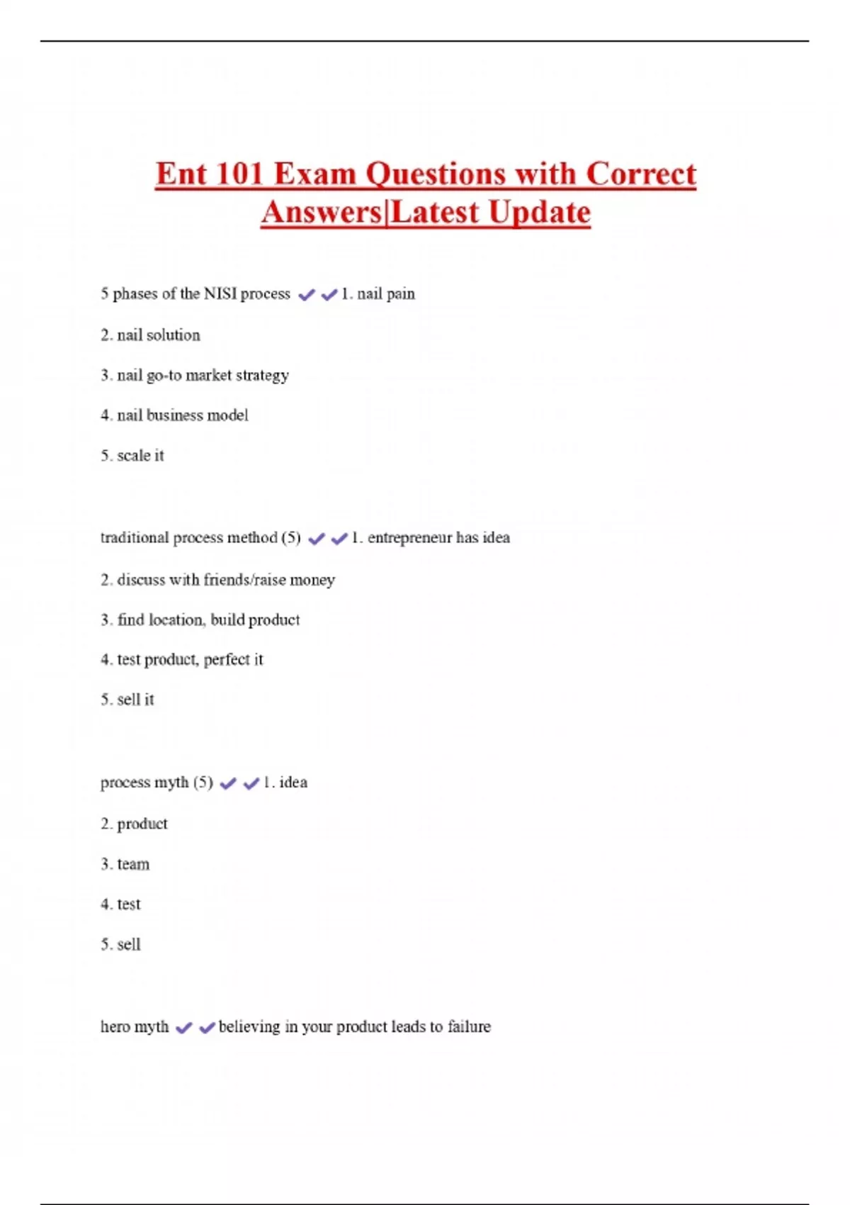 Ent 101 Exam Questions with Correct Answers|Latest Update 2 Exam (elaborations) Ent 101 Exam Questions with Complete Solutions 3 Exam (elaborations) Ent 101 final Exam Questions with Complete Solutions 4 Exam (elaborations) ENT 101 EXAM #1 Questions and Answers 100% Verified by Experts 5 Exam (elaborations) ENT 101 Midterm 1 Exam Questions with