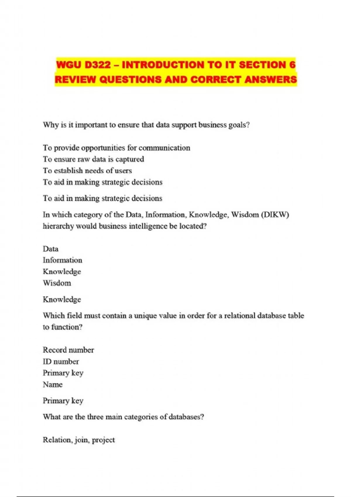 WGU D322 INTRODUCTION TO IT EXAM QUESTIONS AND 100% VERIFIED ANSWERS ()