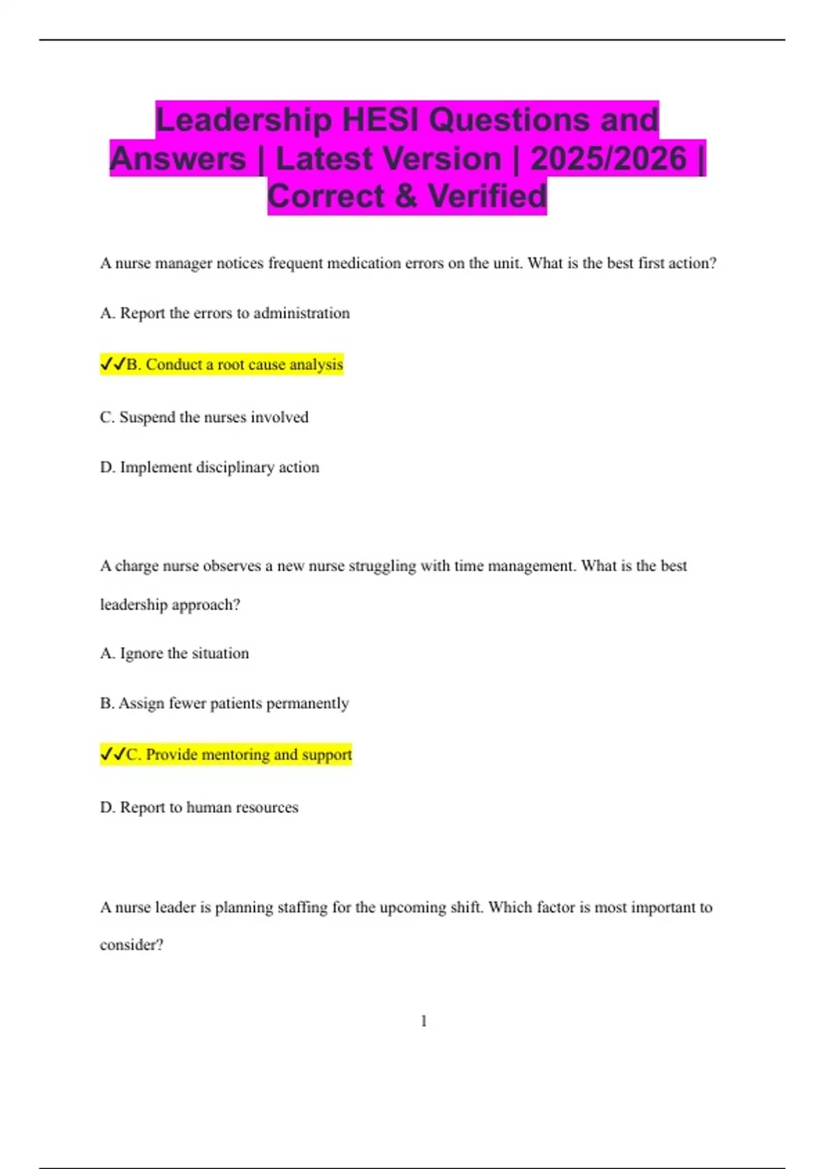 HESI Leadership Bundled Exams Questions and Answers Multiple Versions Latest Updates (2025/2026) (Complete, Accurate, and Verified)