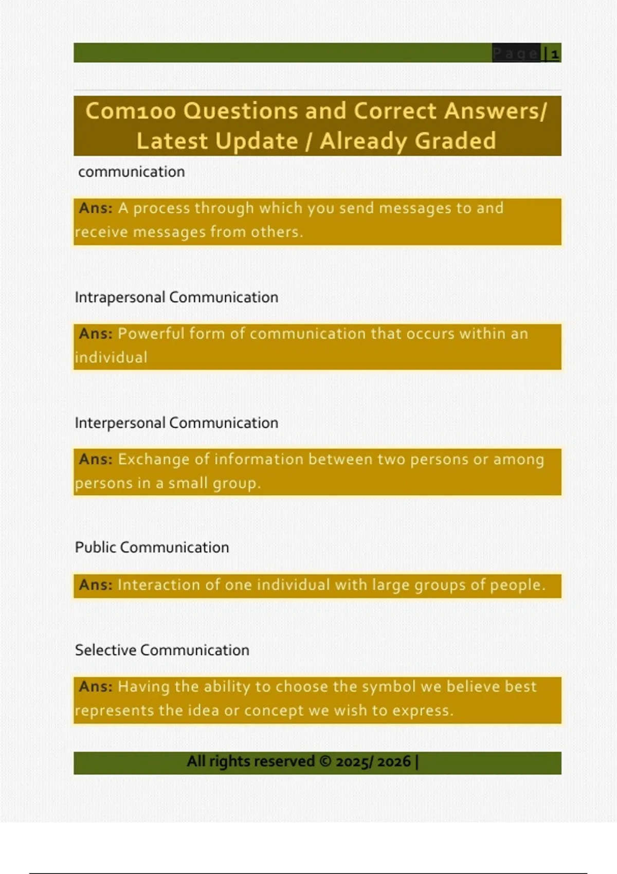 om100 Questions and Correct Answers/ Latest Update / Already Graded