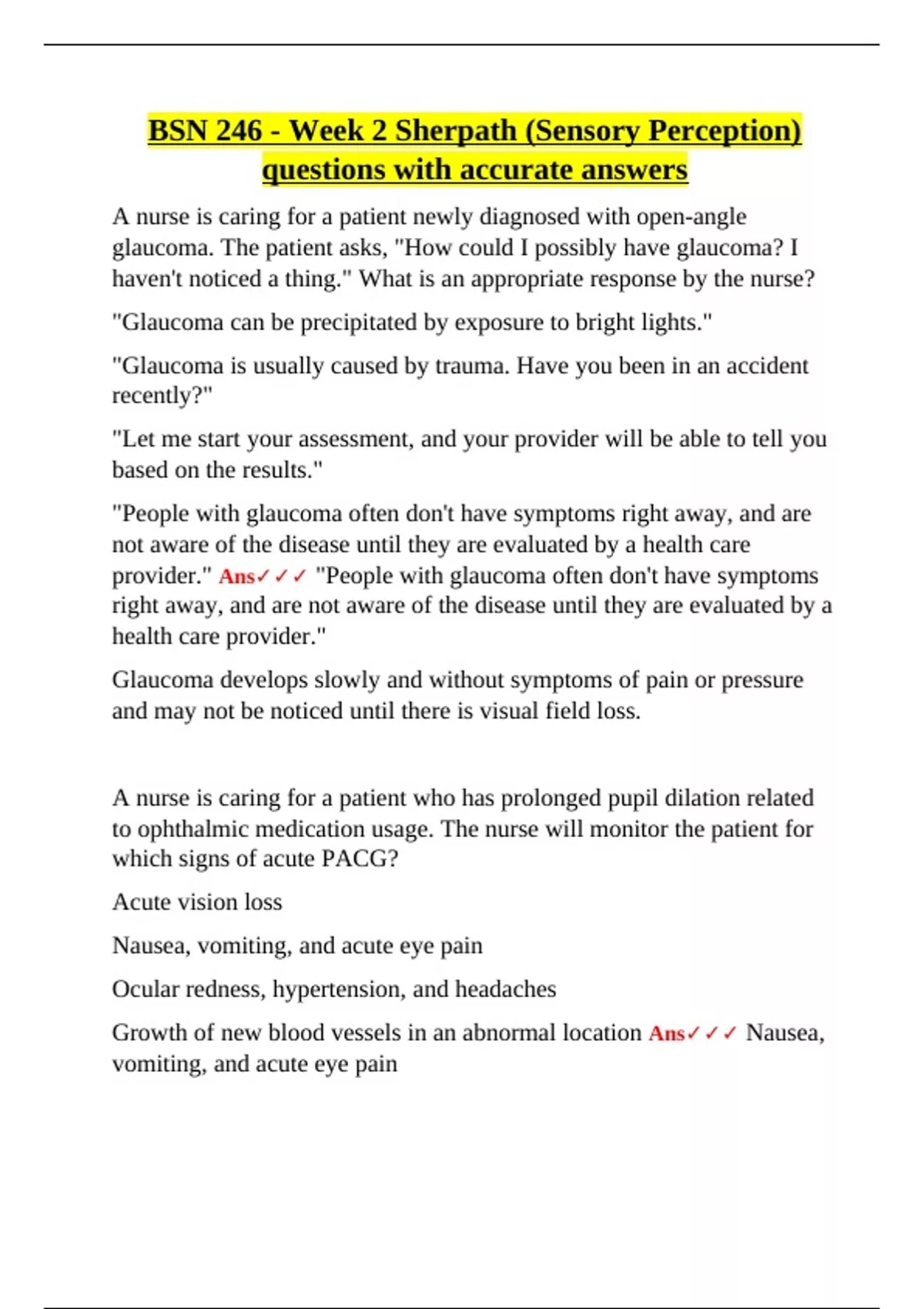 BSN 246|TEST STUDY GUIDE Bundle | Verified Q&A|