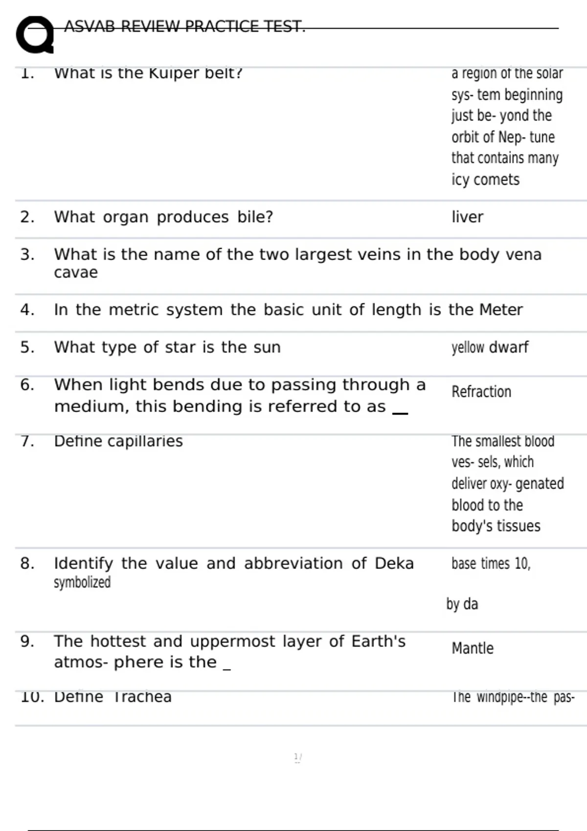 ASVAB Practice Test 1 Questions & Answers.